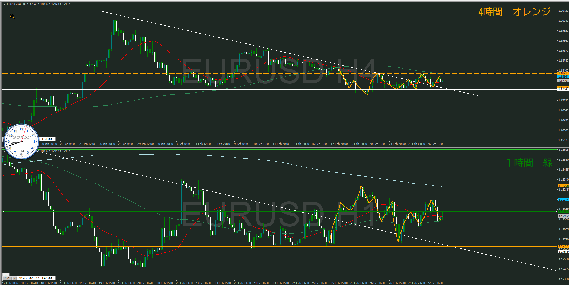 【1時間】方向下 下落の波が戻り売りエリア到達