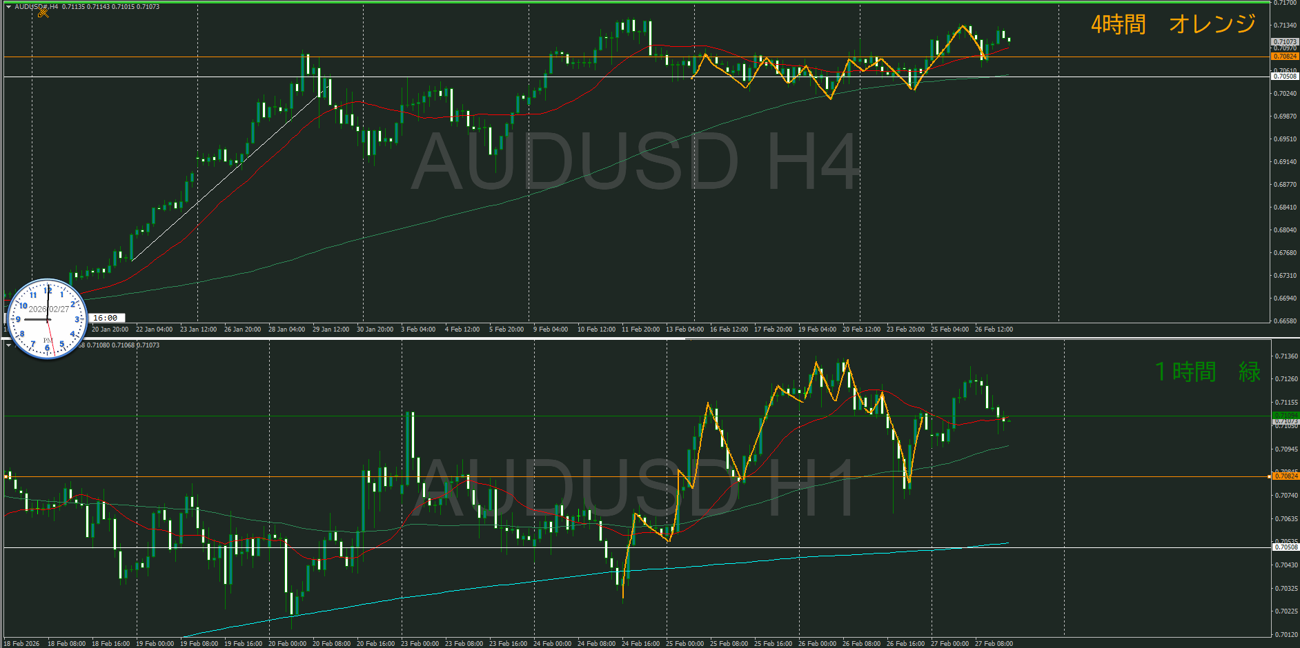 テクニカル的には、1時間の押し目買い待ち