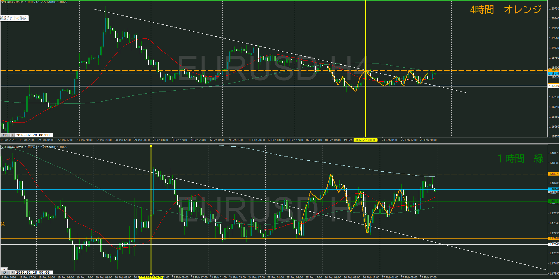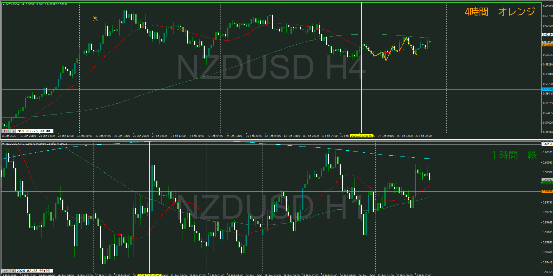 蓋を開けてみたら、4時間の中段持ち合い下落