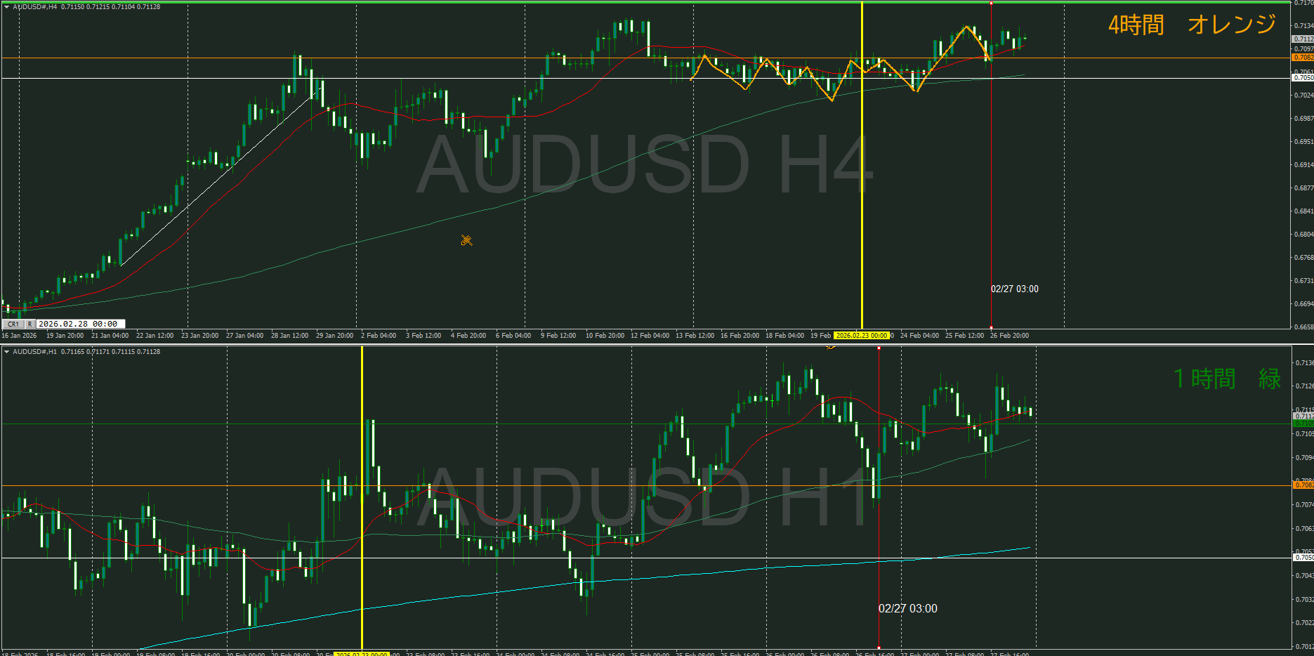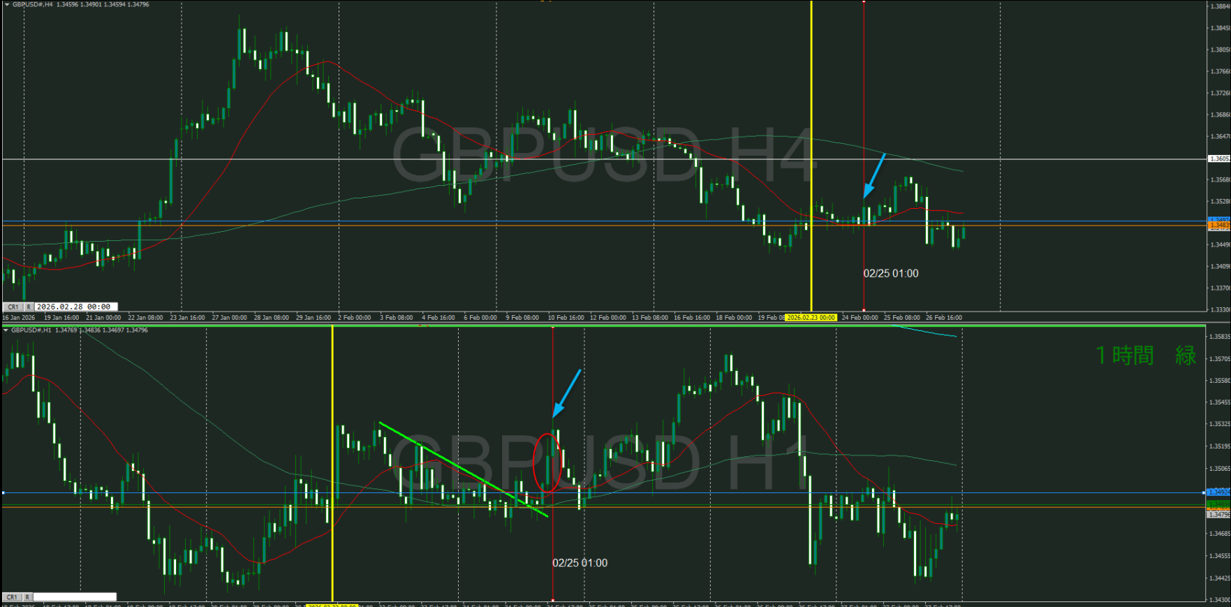 4時間足のこの1本(青い矢印)