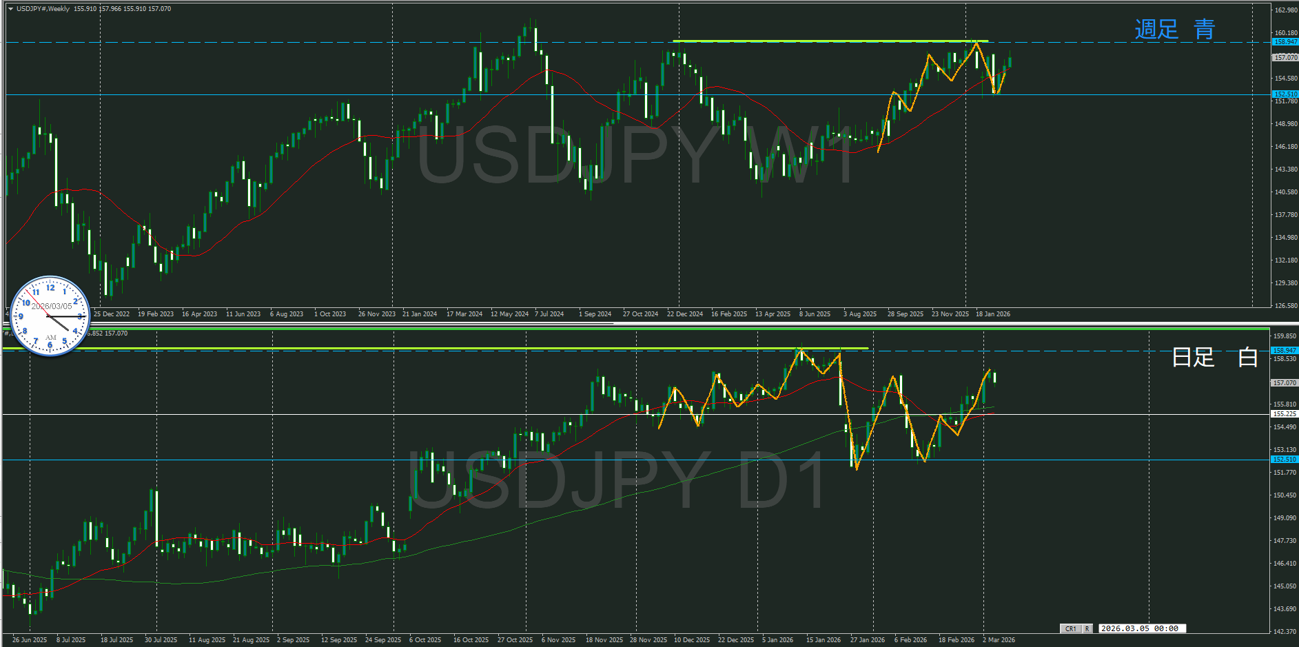 基本的には逆なんだけど、日足が軸足となって動いていたが、その影響が気になる