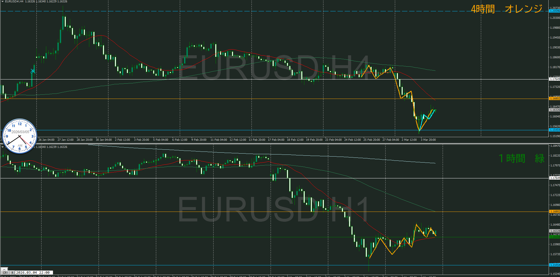 【4時間】方向下 下落の波から戻しているところ