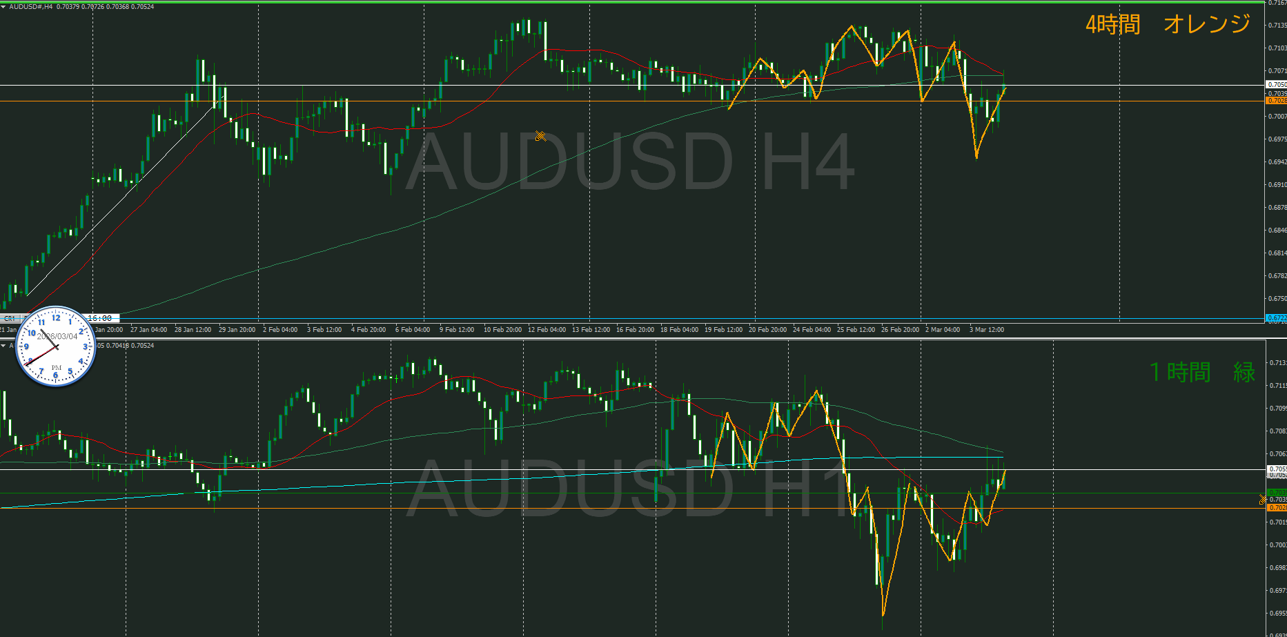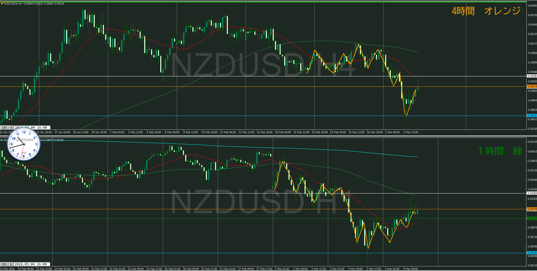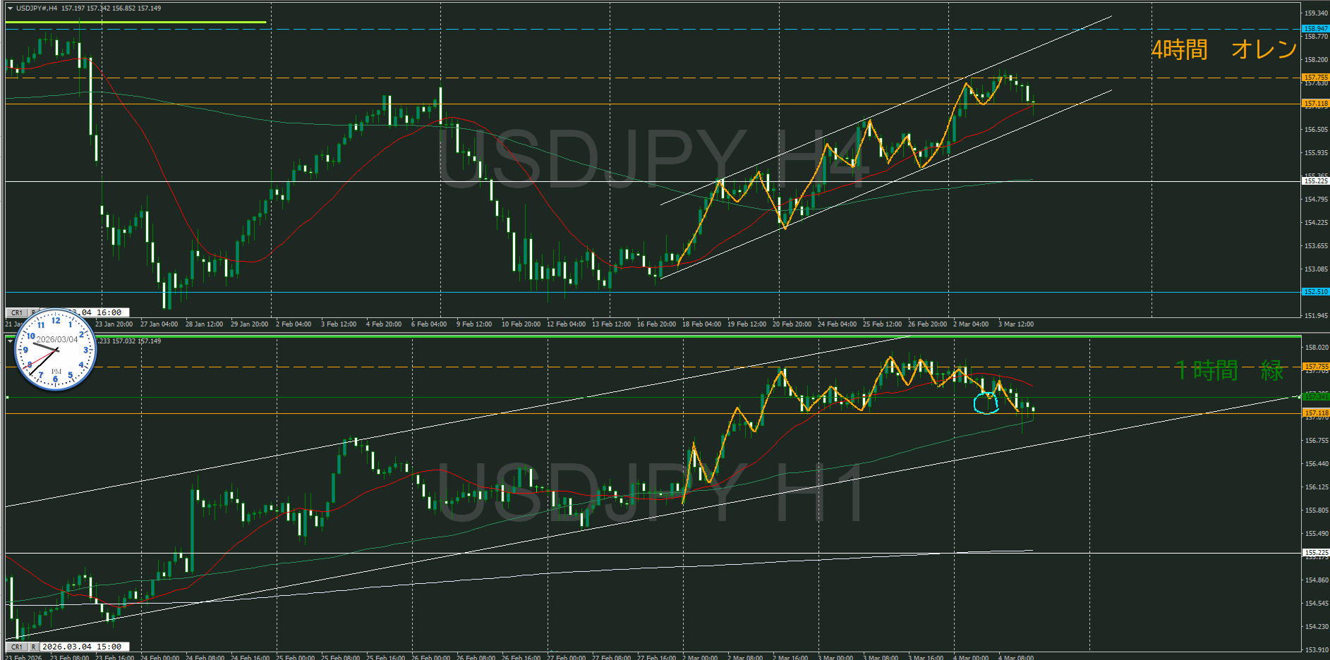 4時間がどうなって居るのか、これからの1時間の値動きで判断していくしかない
