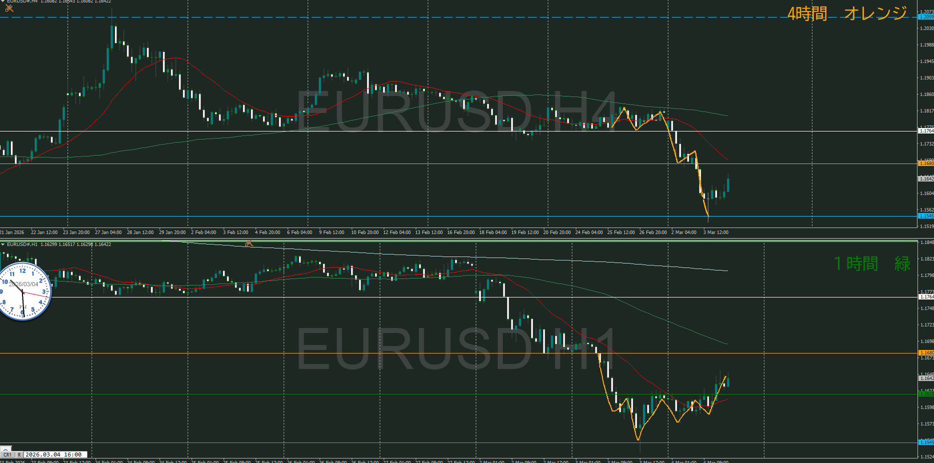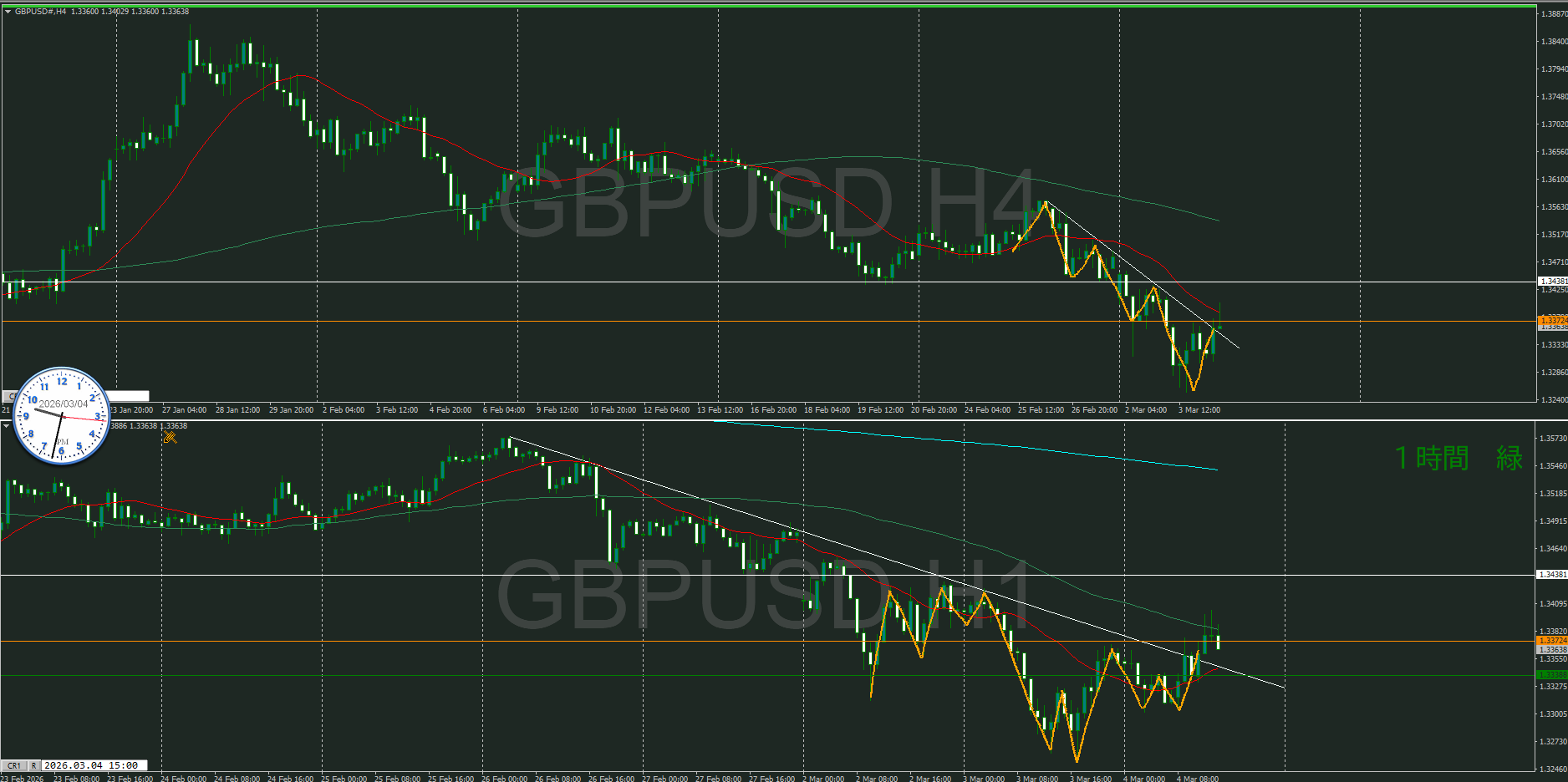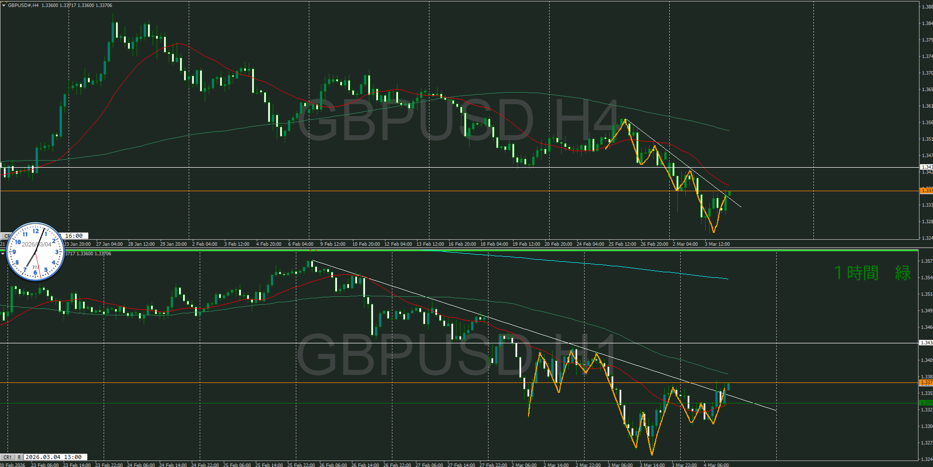 4時間がどうなって居るのか、これからの1時間の値動きで判断していくしかない