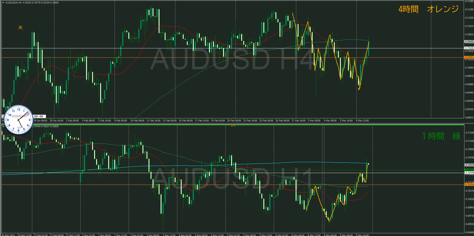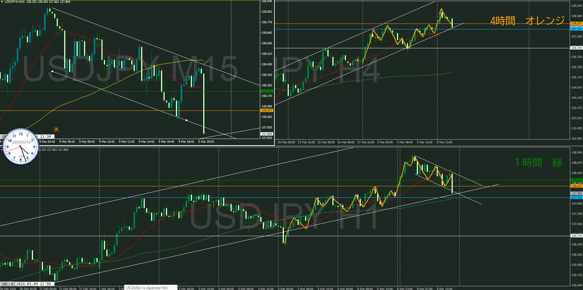 4時間では日足と逆で、今は何もできない