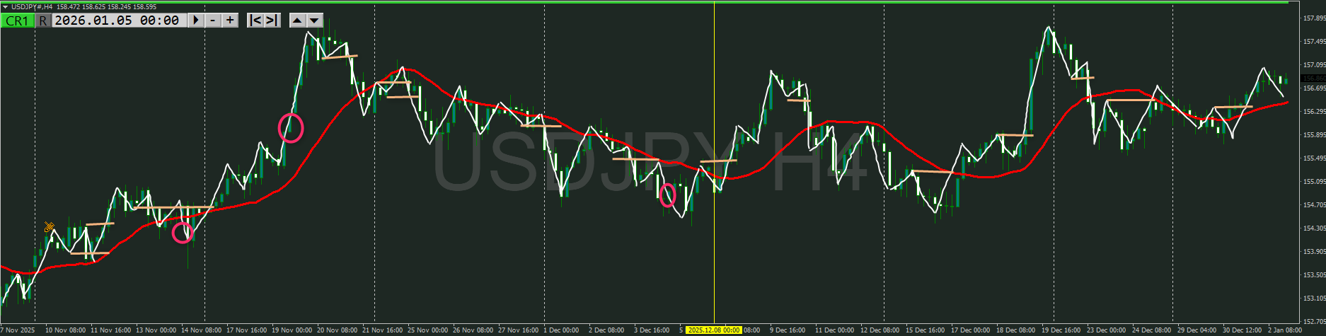 ◇4時間の戻り売り押し目買いエントリールール