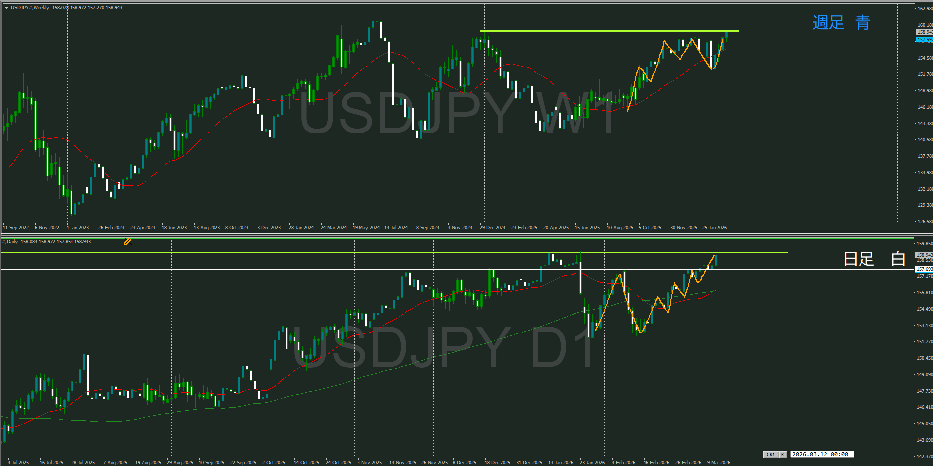週足VS日足で戦いが行われている最中