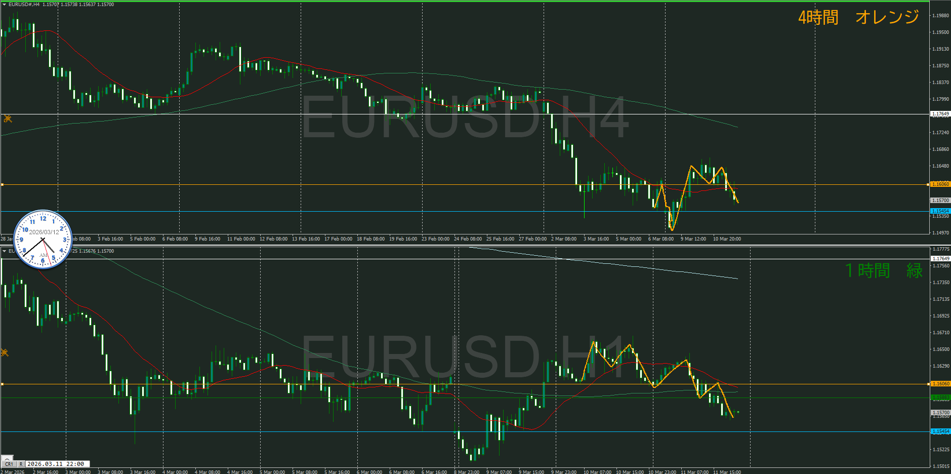 【1時間】方向下 下落トレンドが継続して下落の波の途中