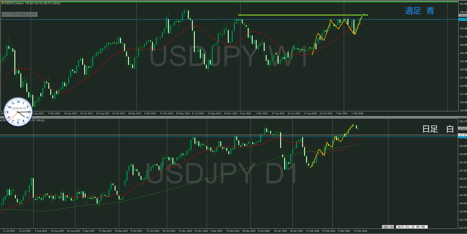 方向的には同じだけど、週足が押してくるのかが焦点