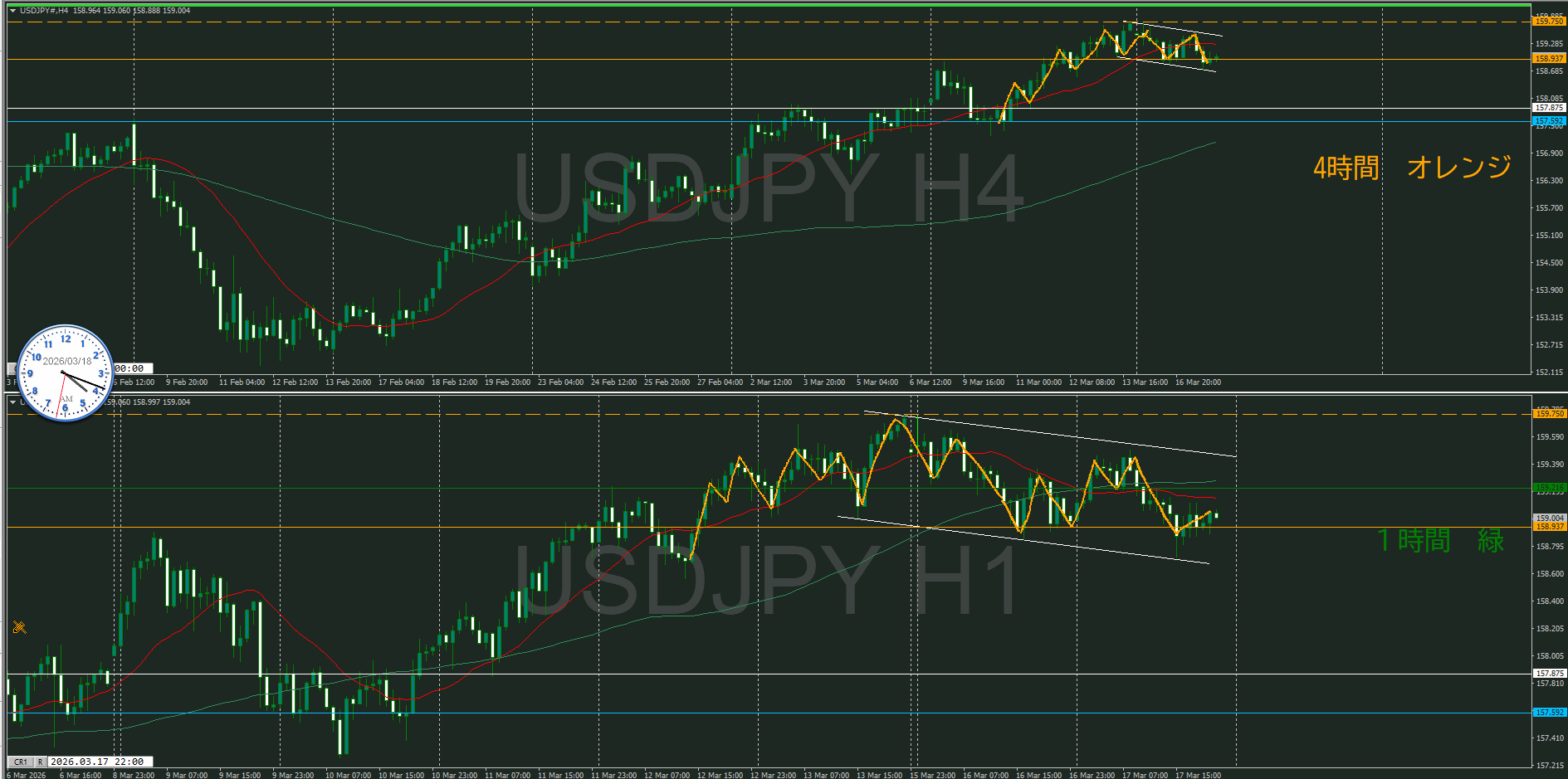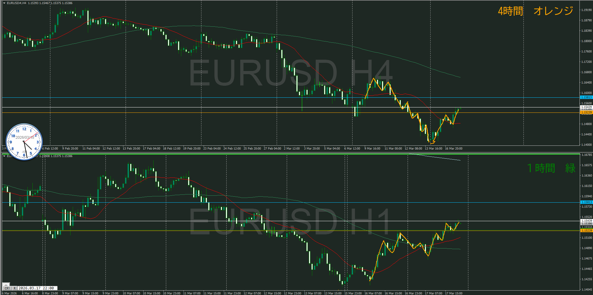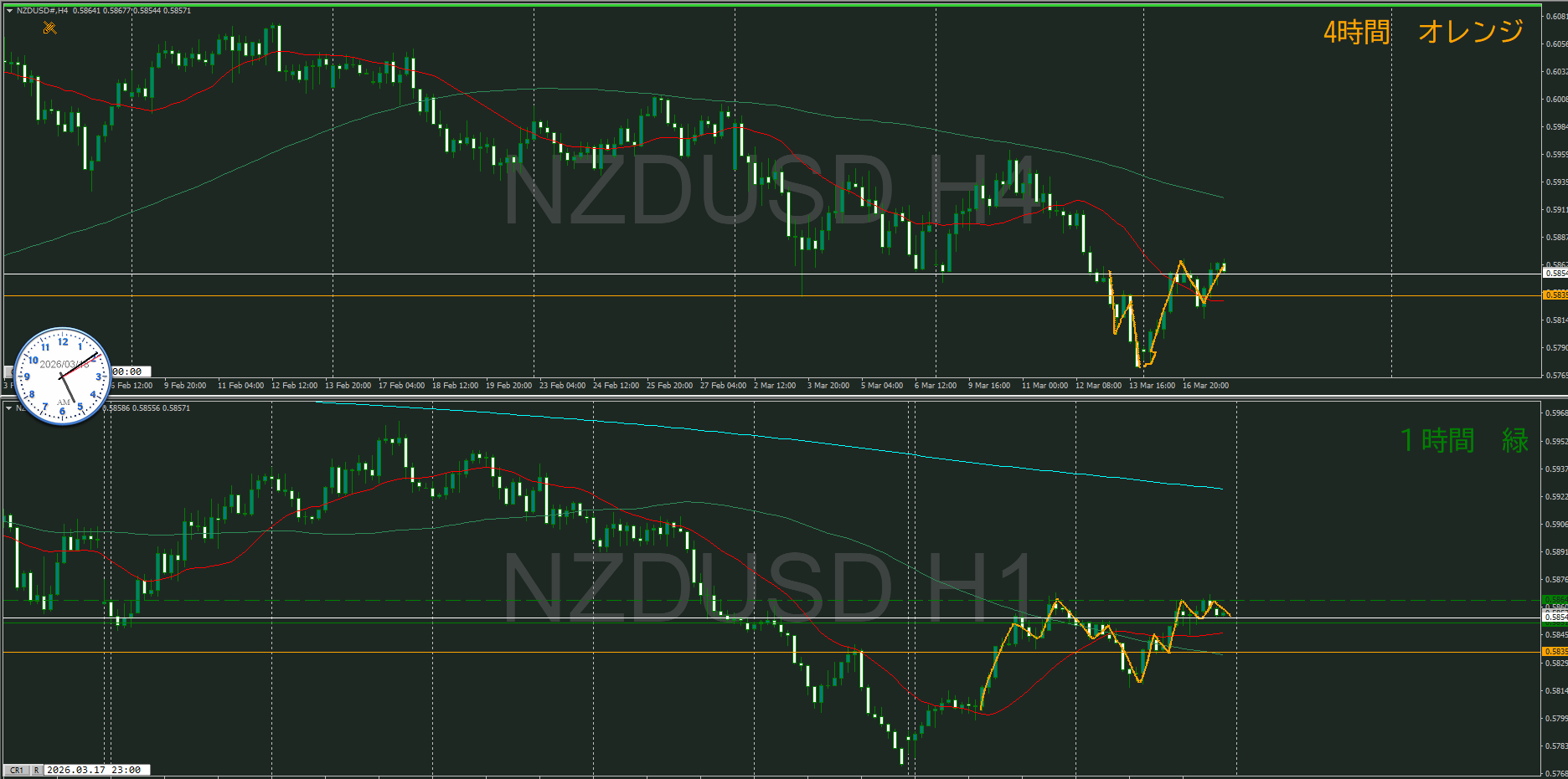 4時間足と同じ価格ライン