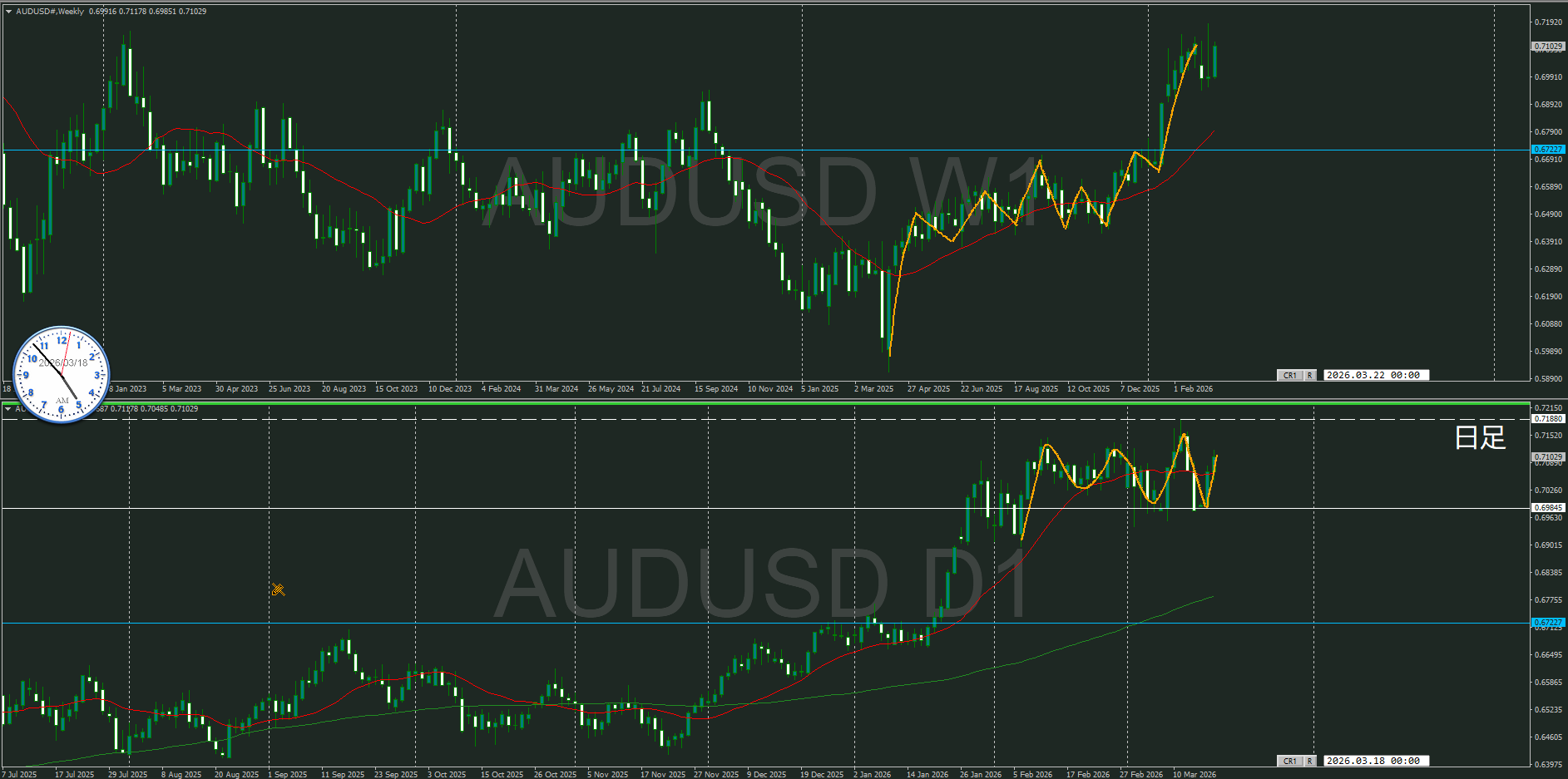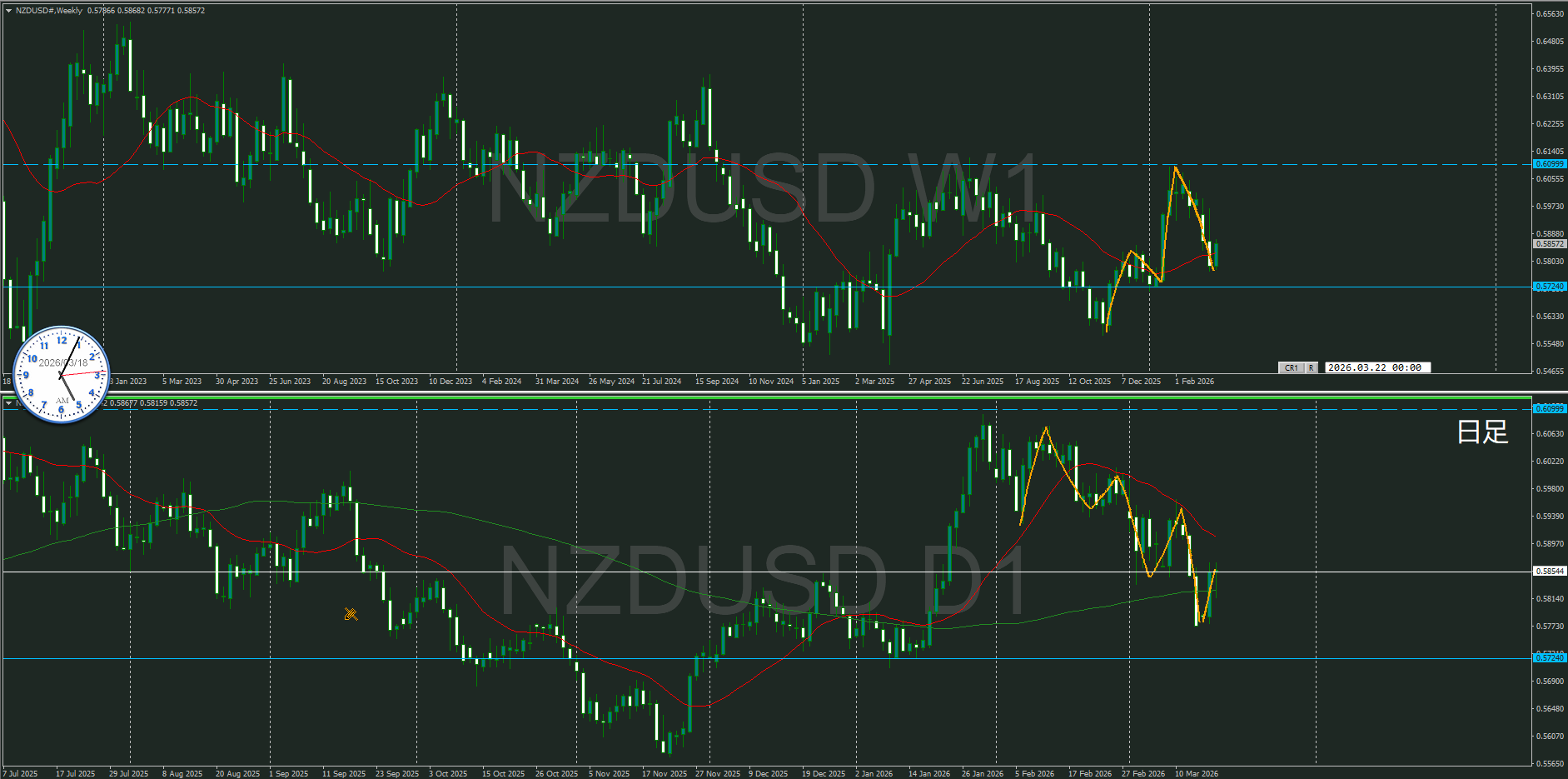 日足がどうなるのか、視ていくところで静観