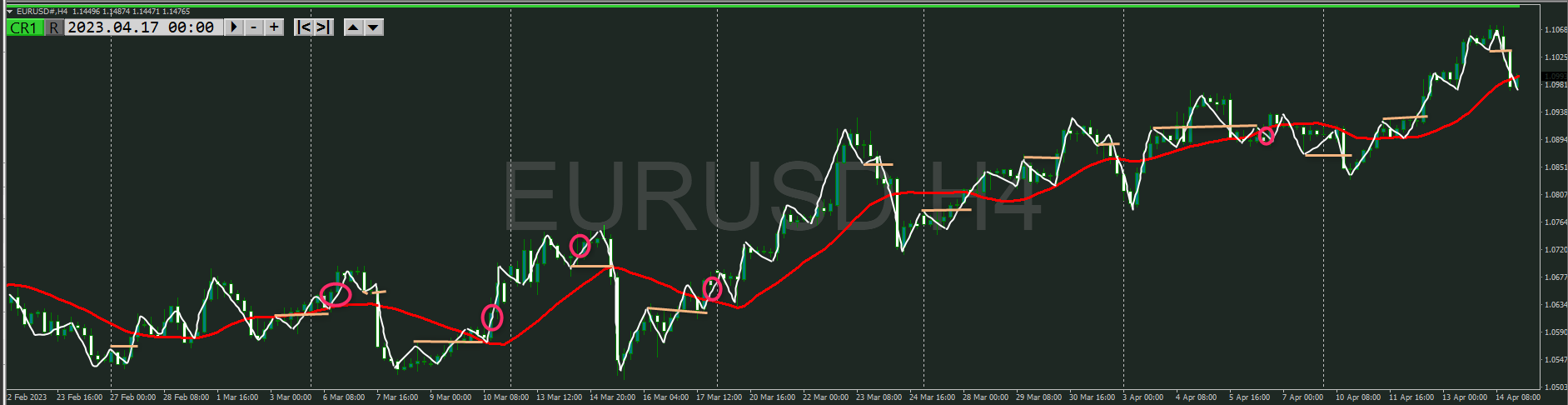 【4時間】方向上 トレンド転換シグナルが出て上昇の波の途中