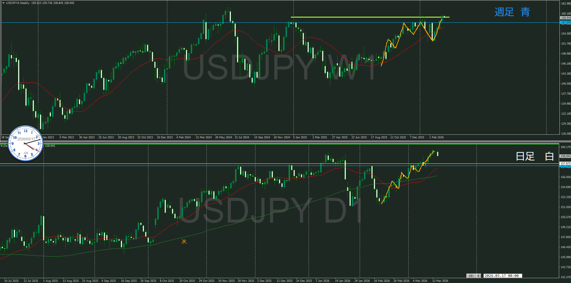 方向的には同じだけど、週足が押してくるのかが焦点