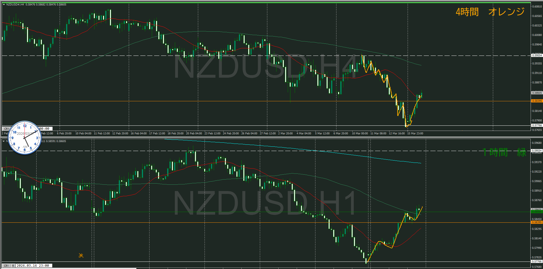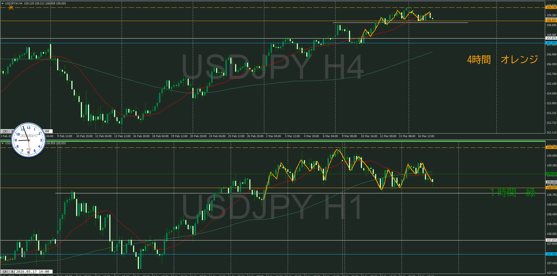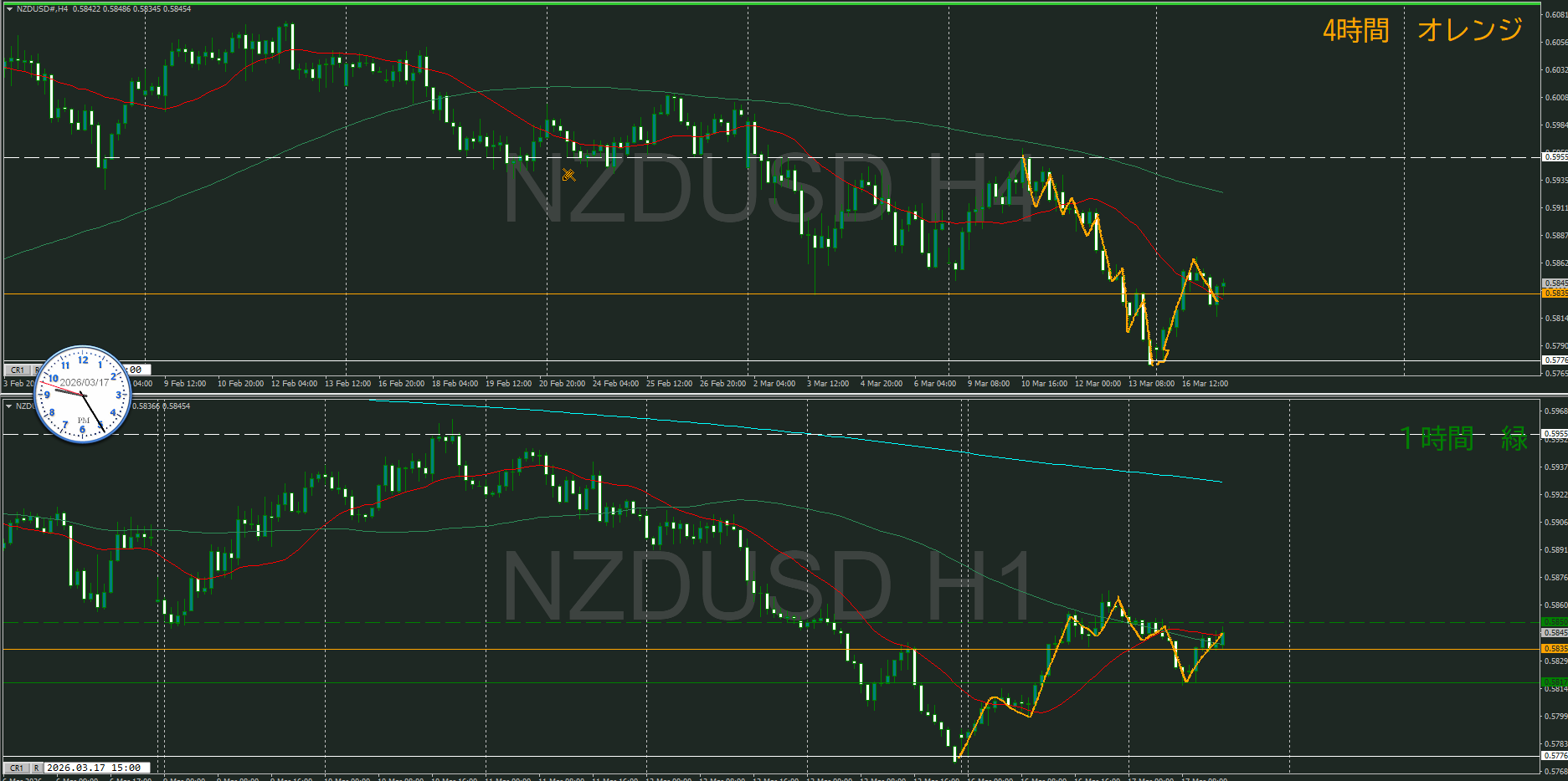 けど、4時間は上目線で日足と逆