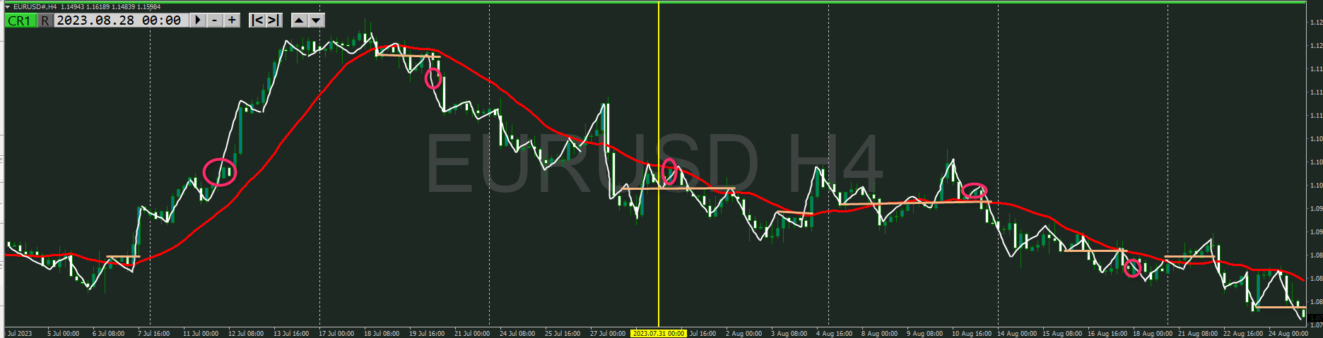 ユロドル 4時間 押し目買いはスルー