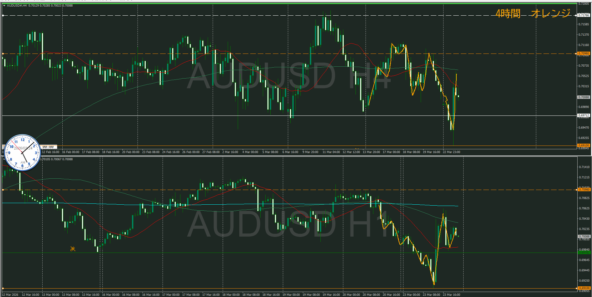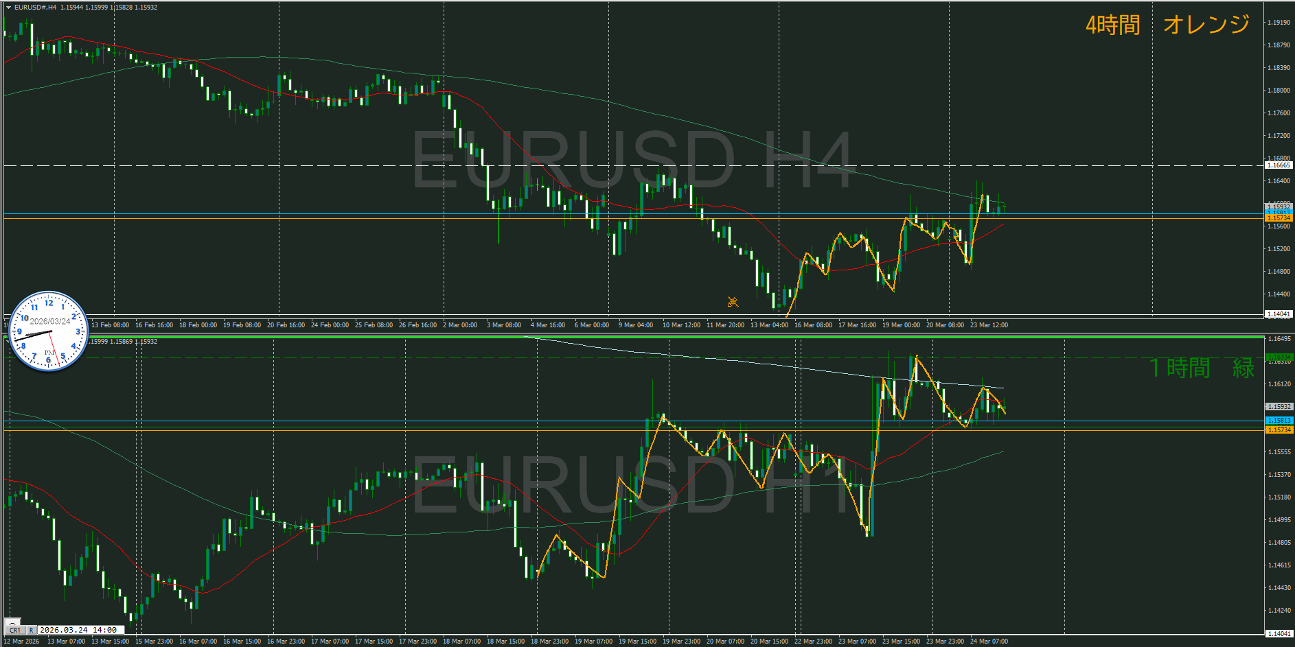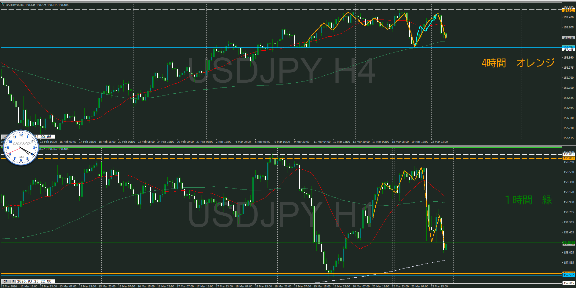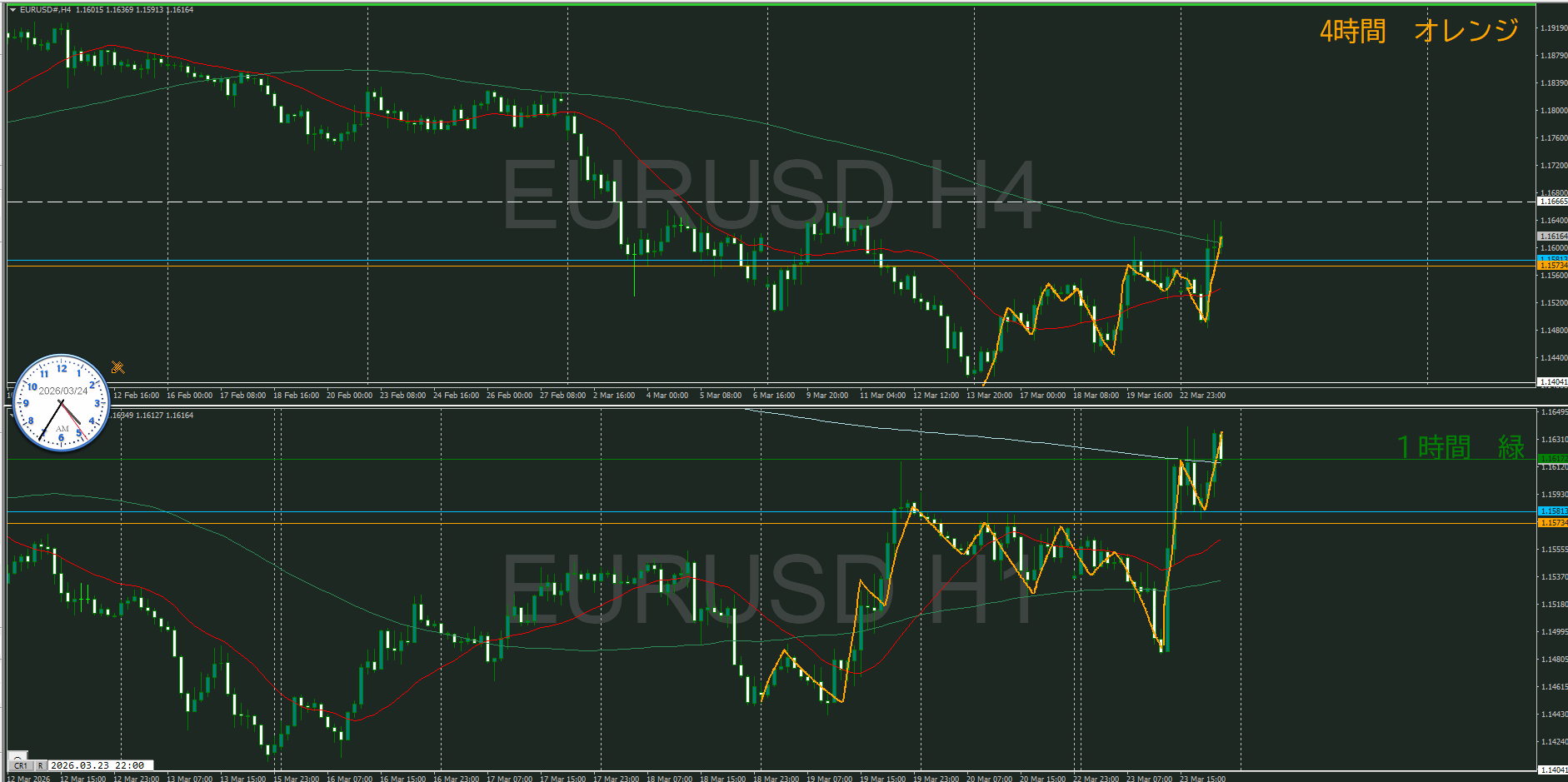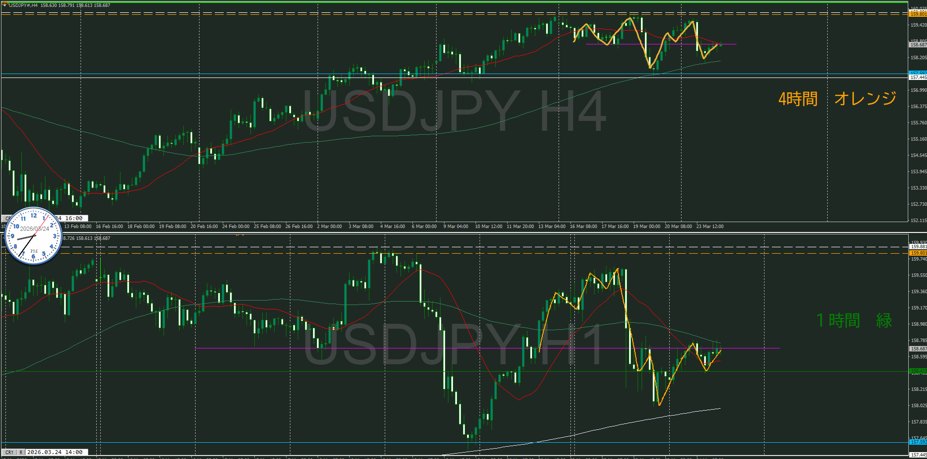 また、日足と4時間のMAも戦いが起こり易いポイント