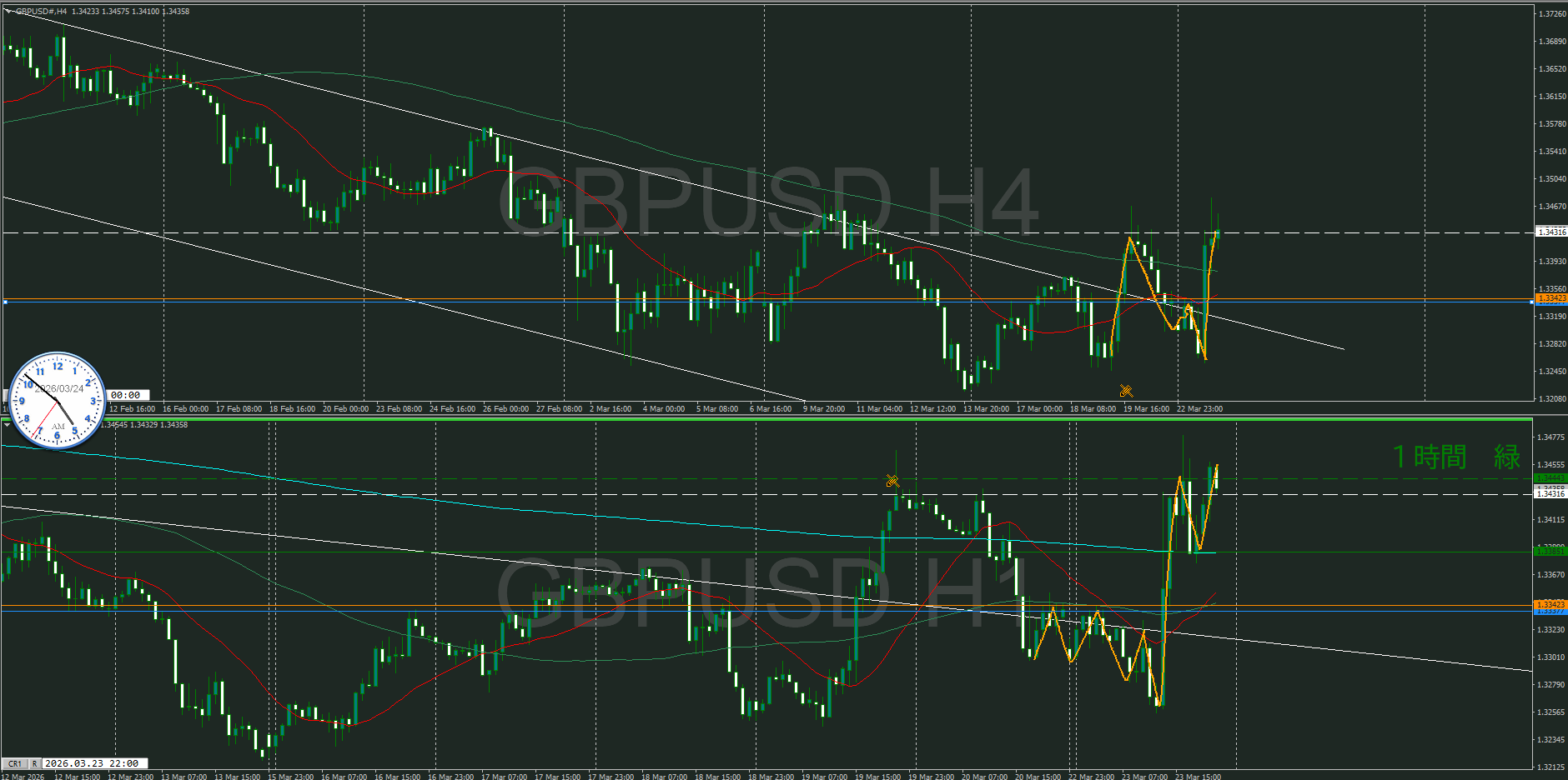 朝は1時間で売れるのかと視ていたけど、日足MAの真上なので簡単には下がらないな~と今更ながら気が付いた