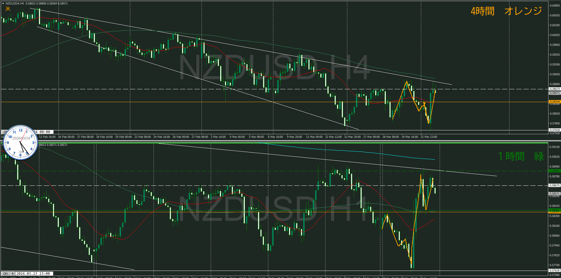 【1時間】方向下 下落トレンドの波の途中