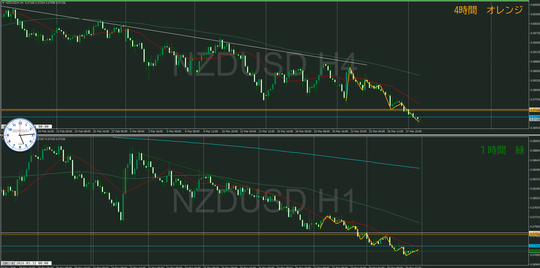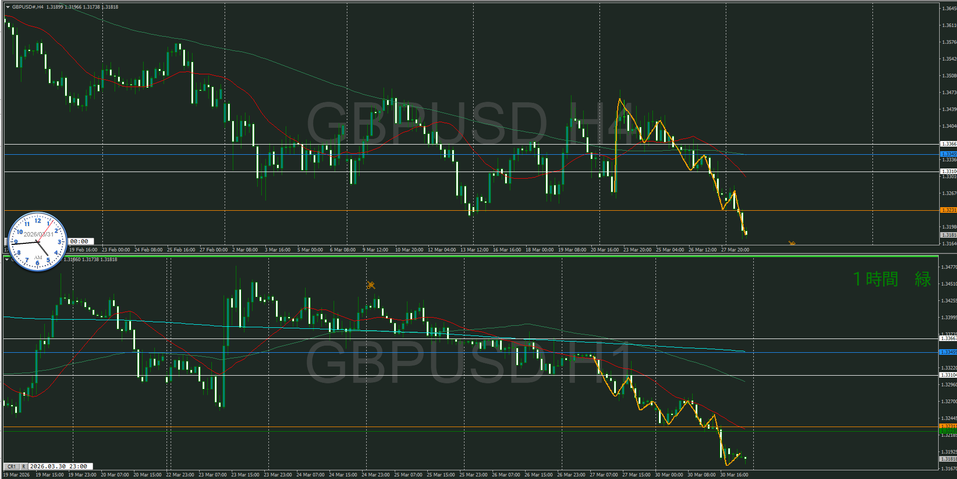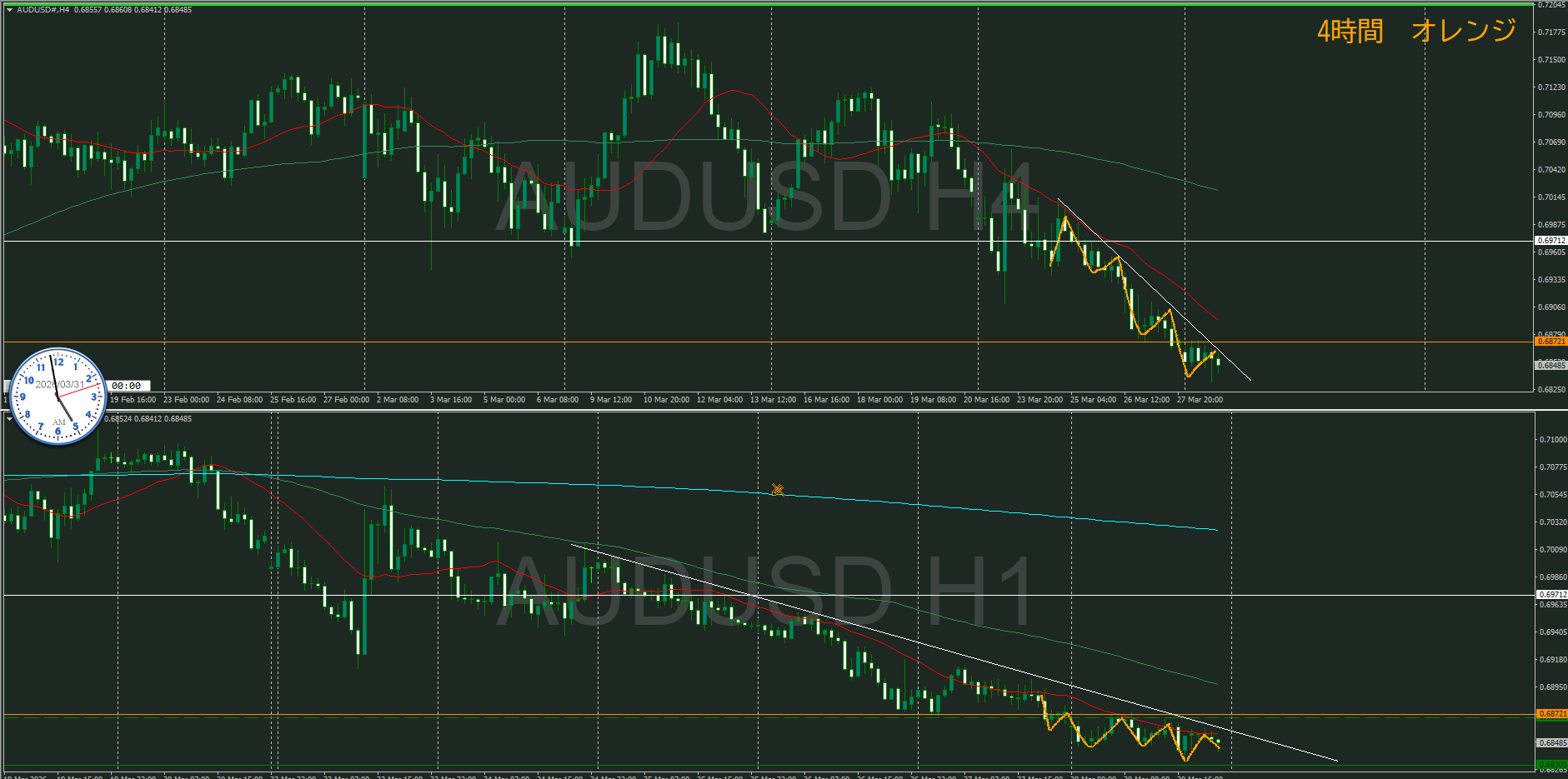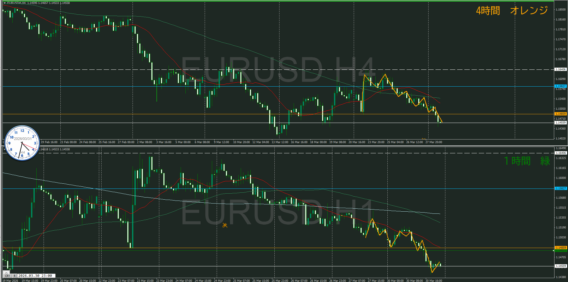 今、4時間と1時間のMAが戦っているところ