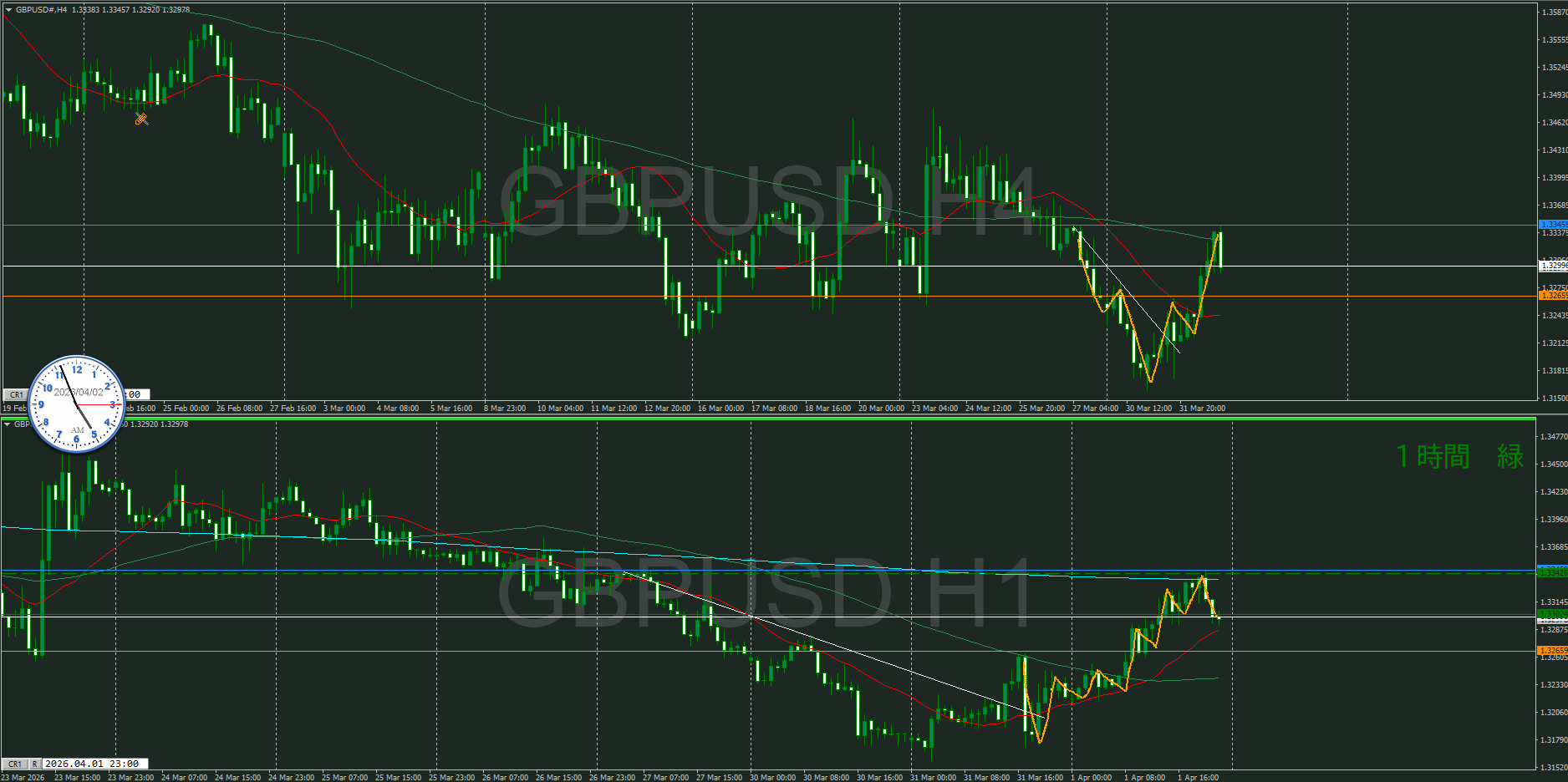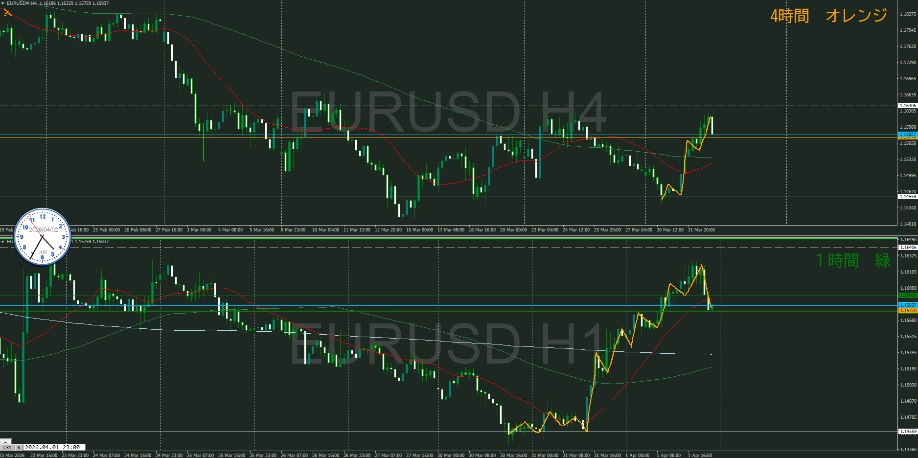 【1時間】方向上 トレンド転換シグナルが出て上昇の波の途中
