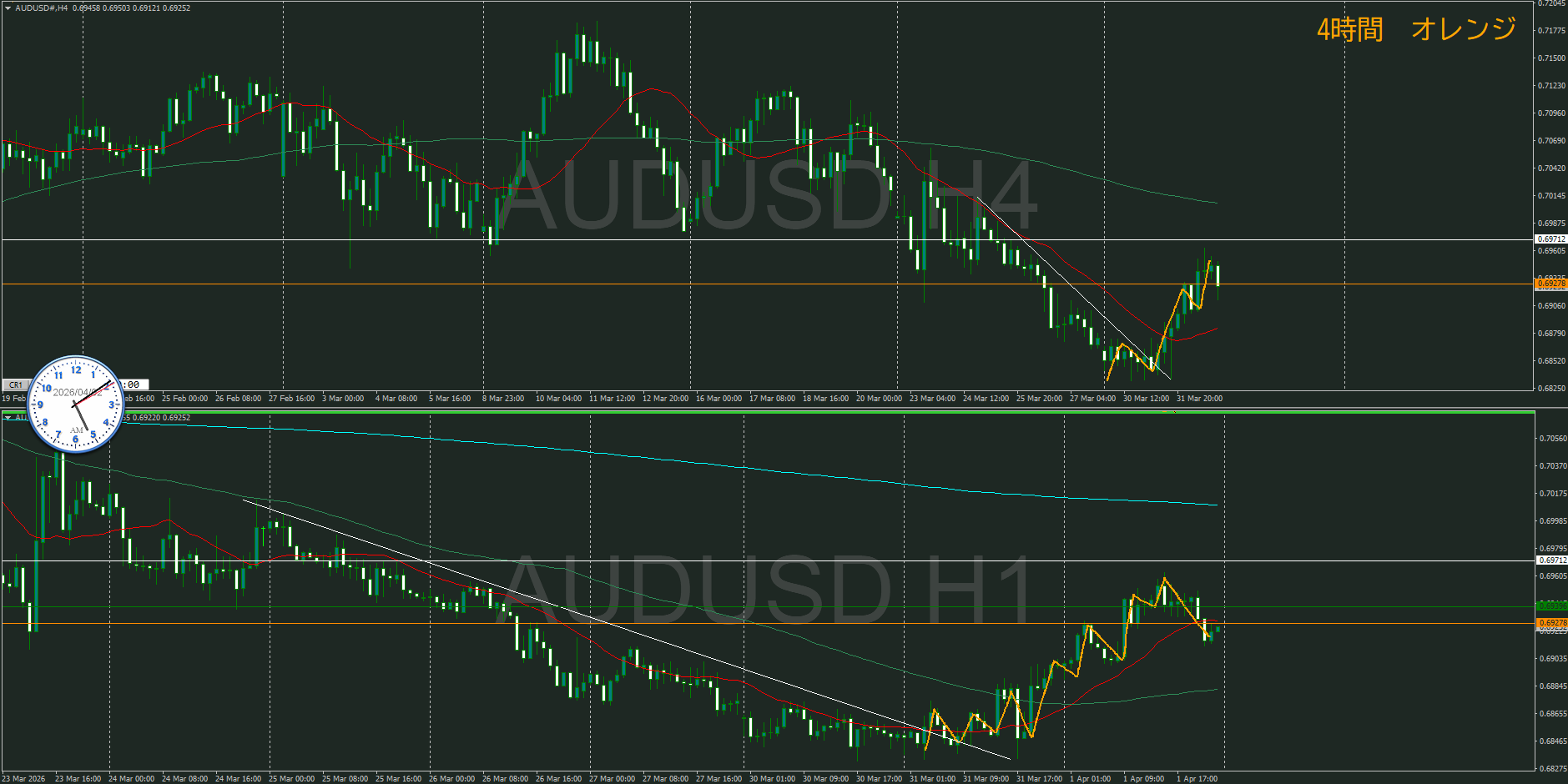 【4時間】方向上 上昇の波から押して来たところ