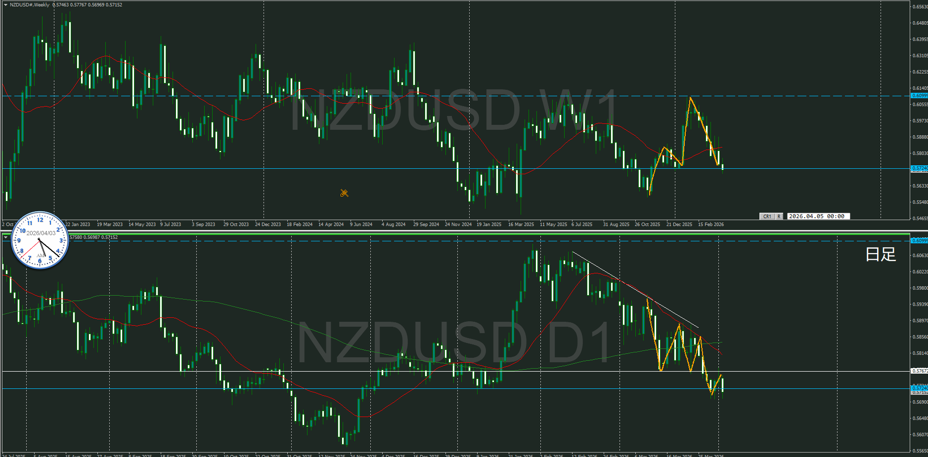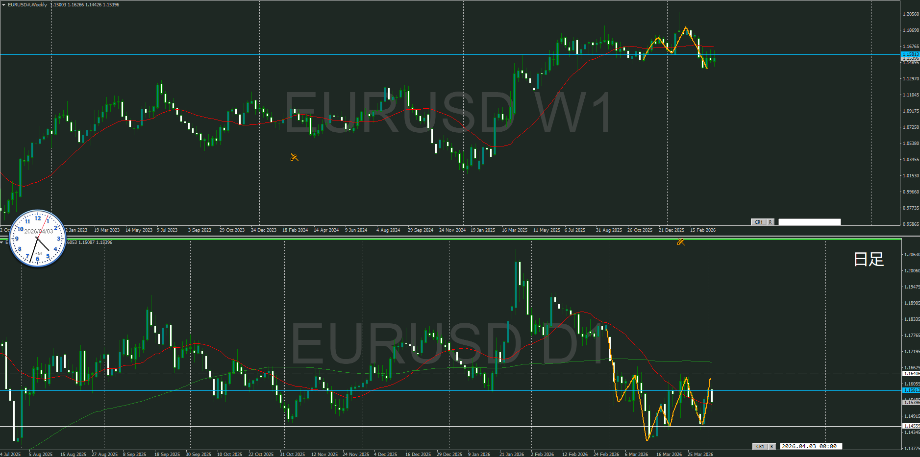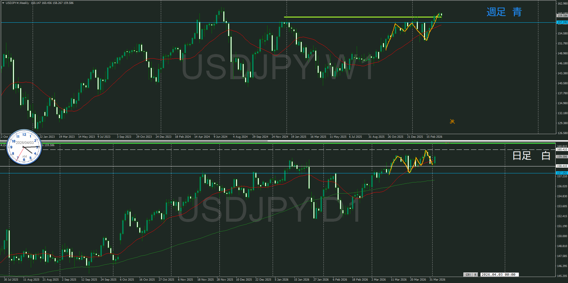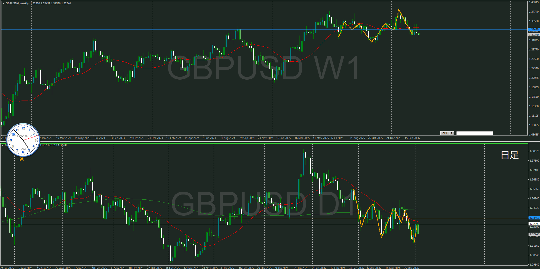 基本的には逆だけど、週足の押しを付けている波なので売りが優勢