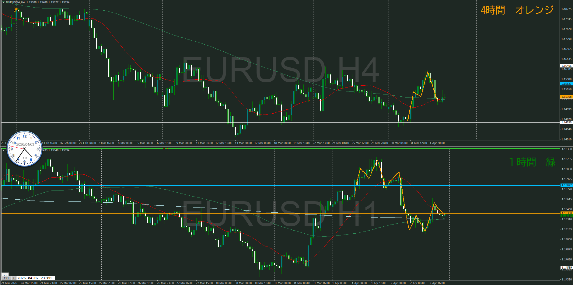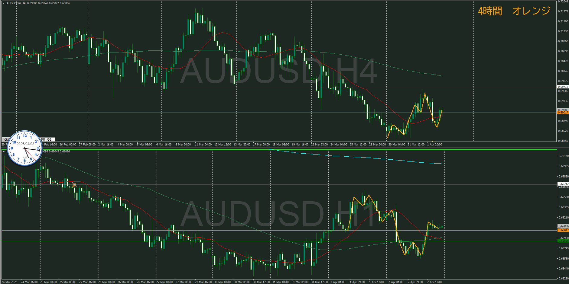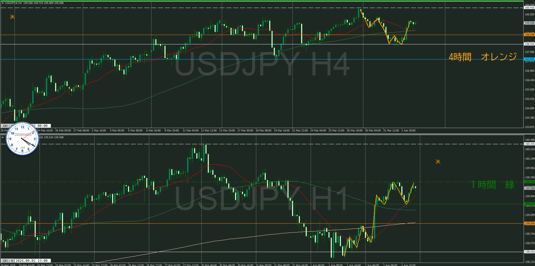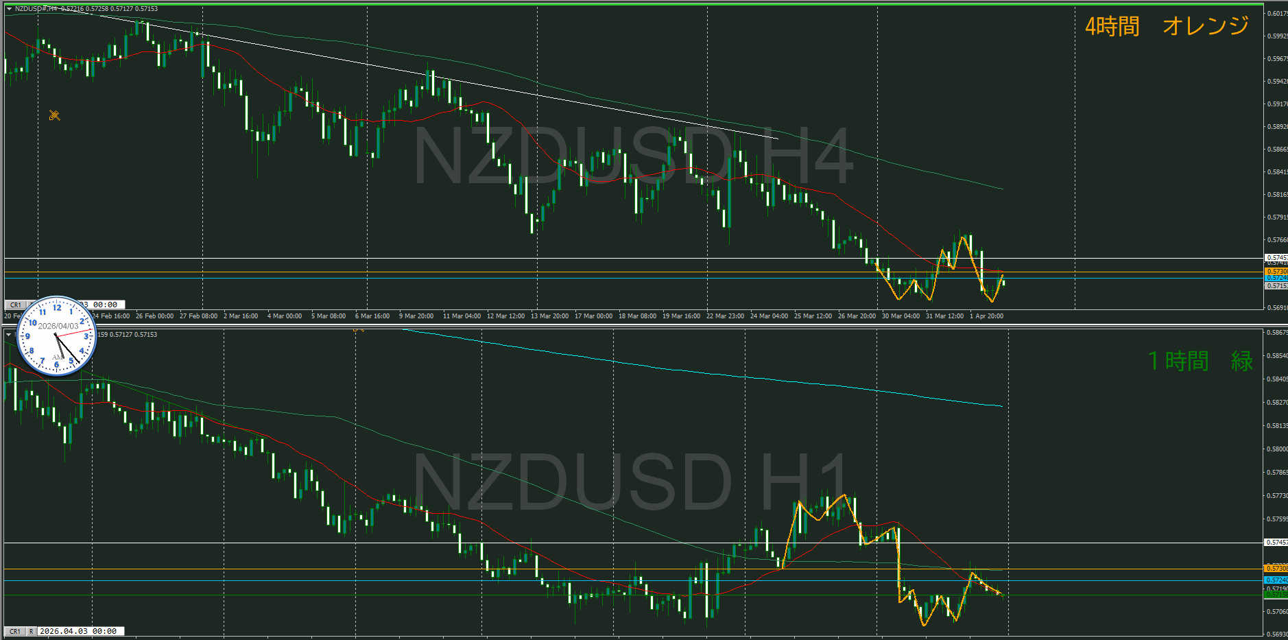 【4時間】方向下 戻り売りエリアに到達