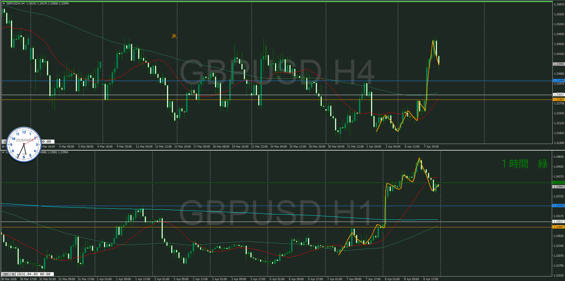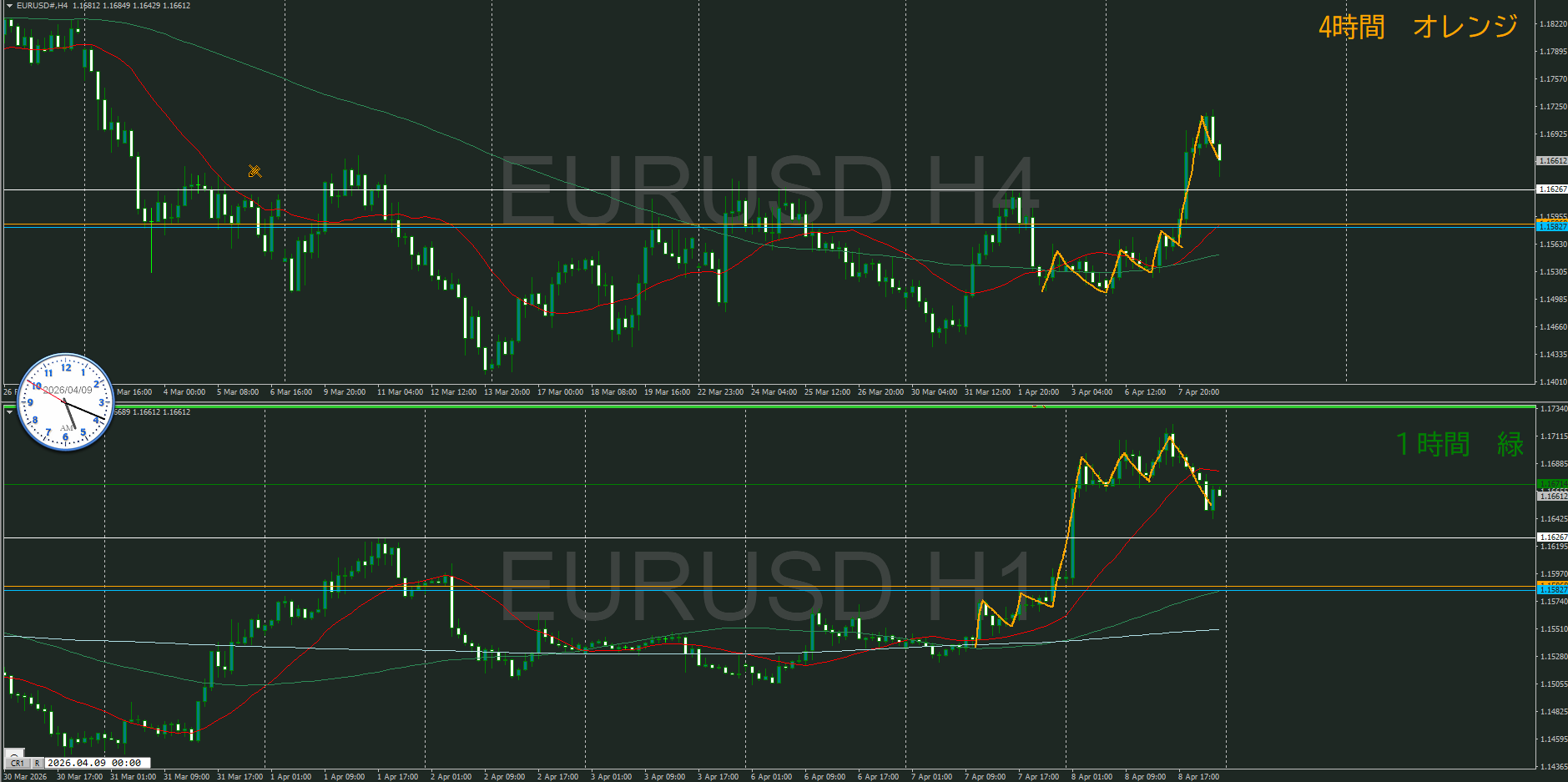 【1時間】方向上 トレンド転換シグナルが出て上昇の波の途中