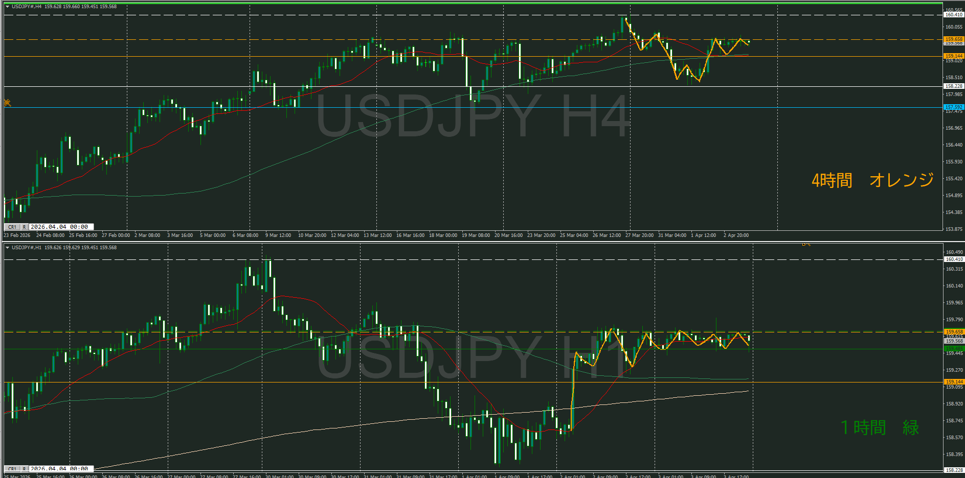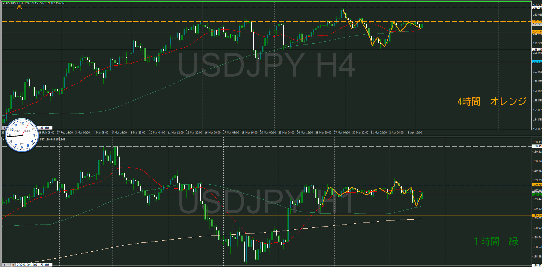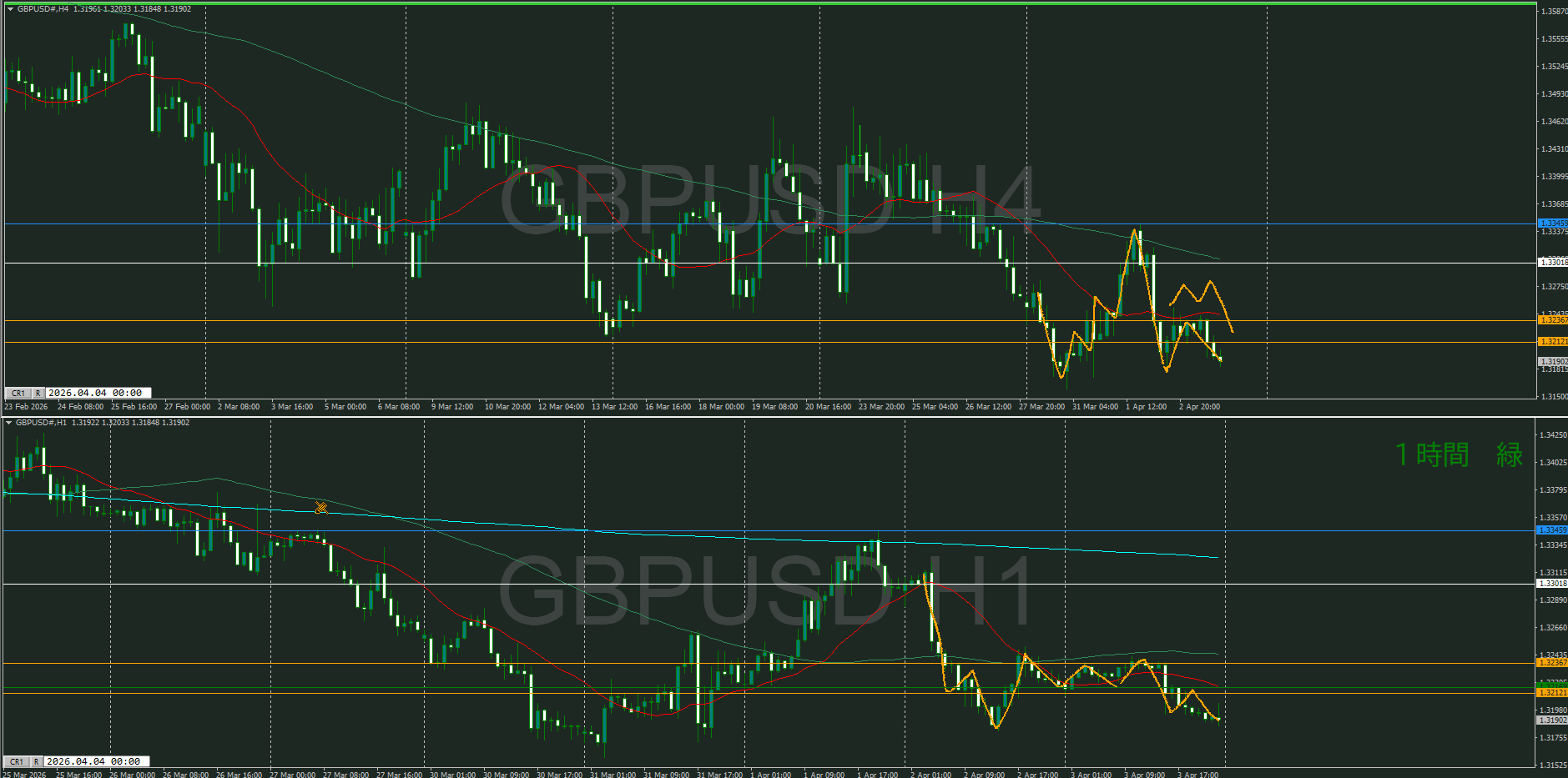 日足・4時間足が調整中で1時間が下を向いたけど、どうなるのか