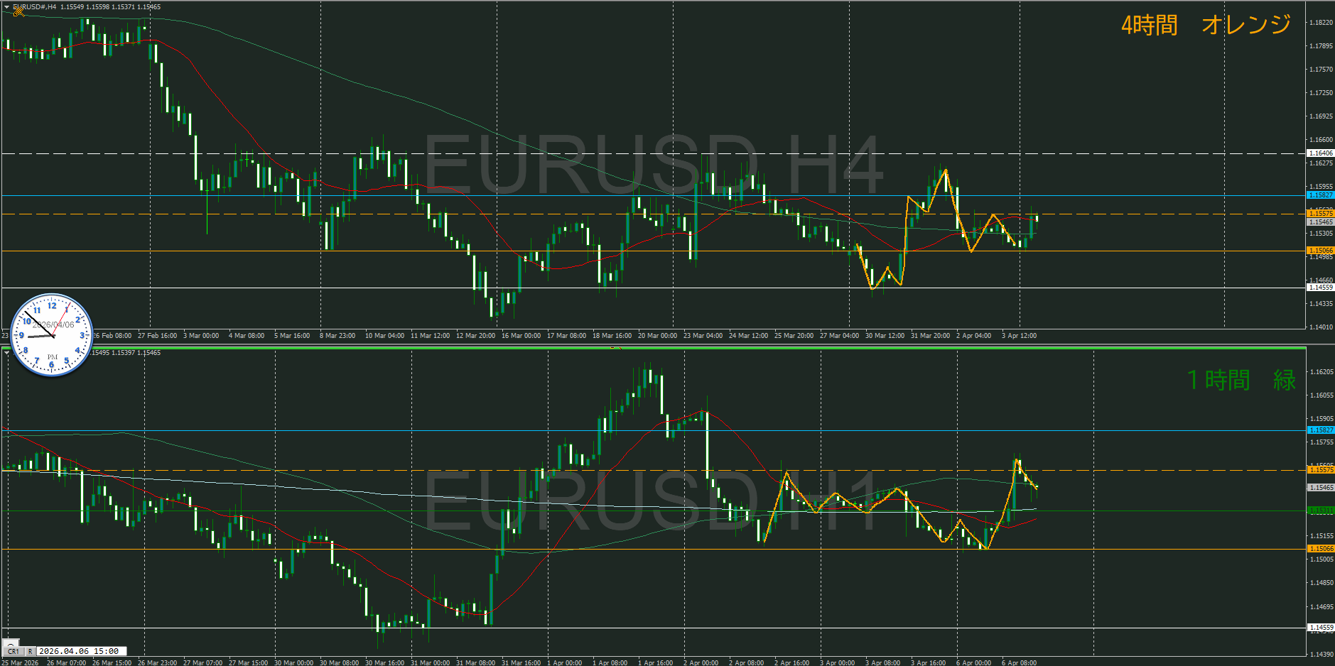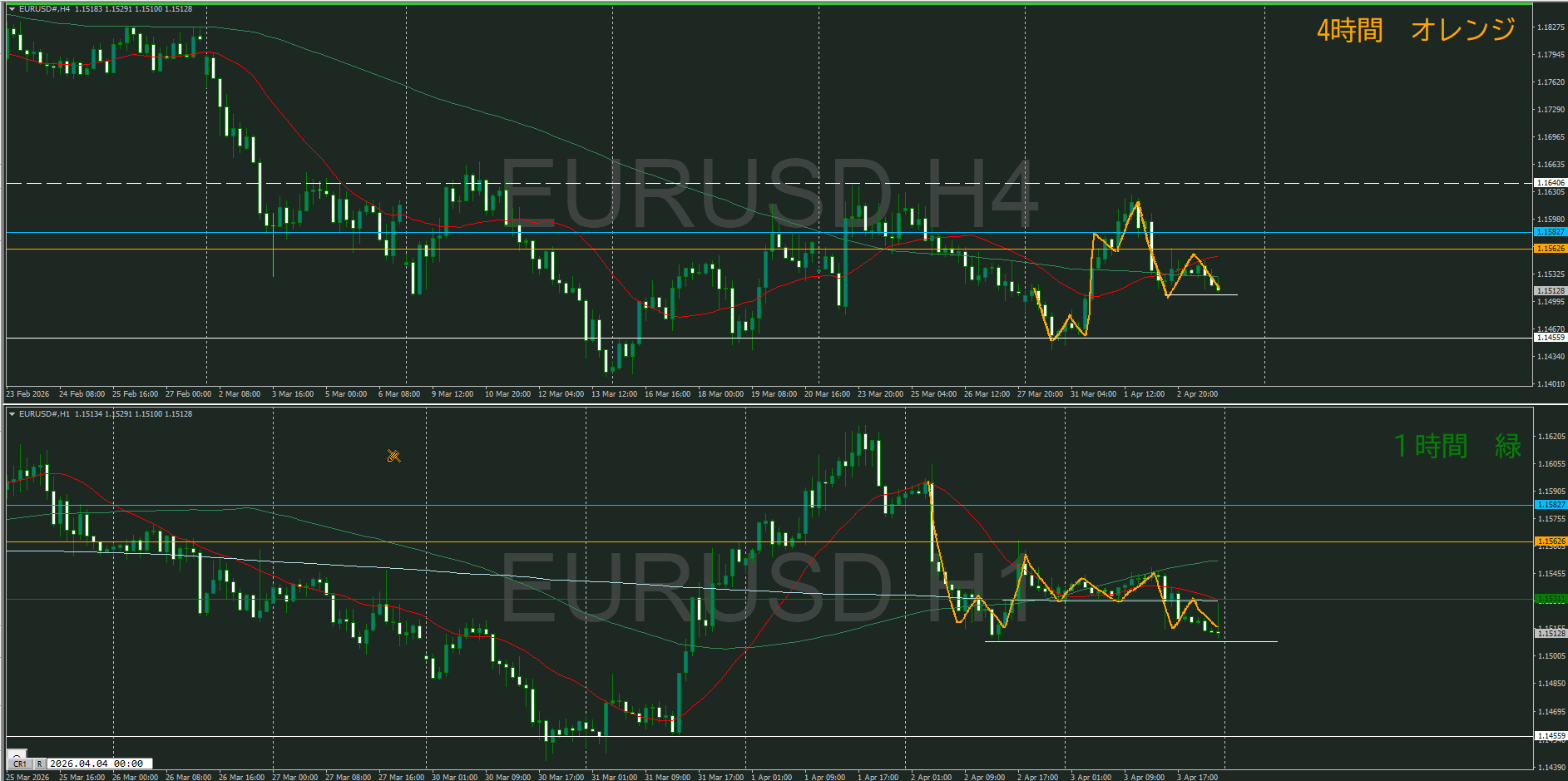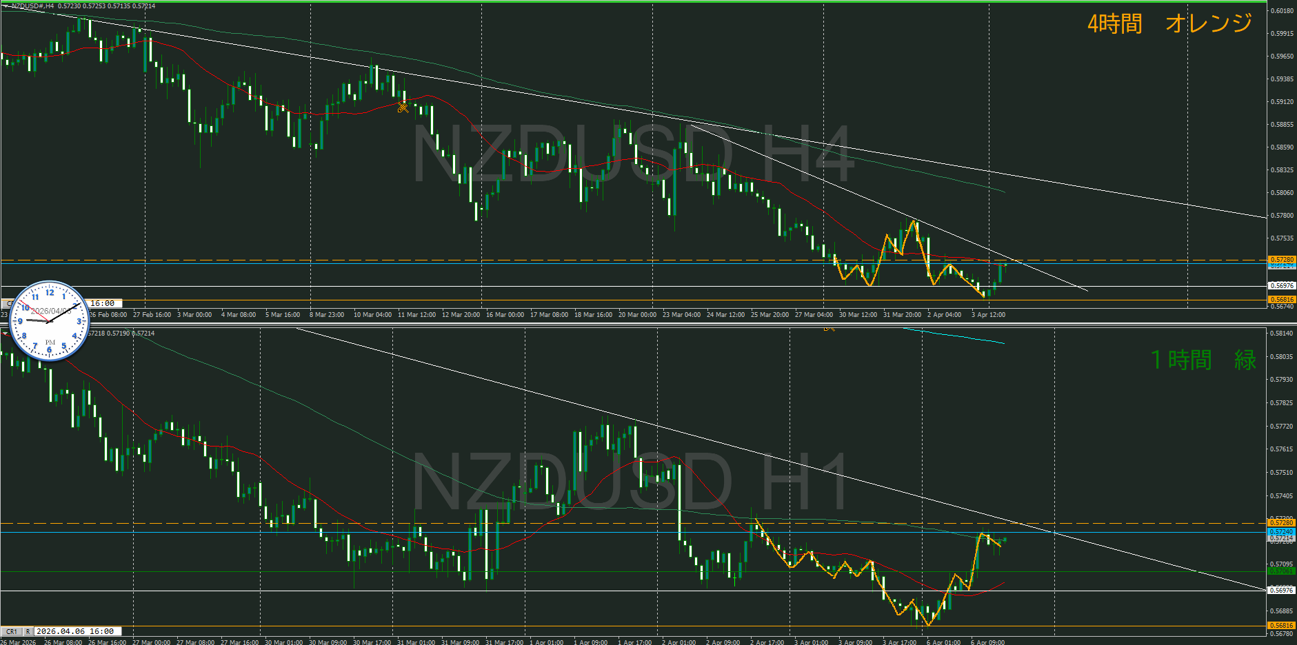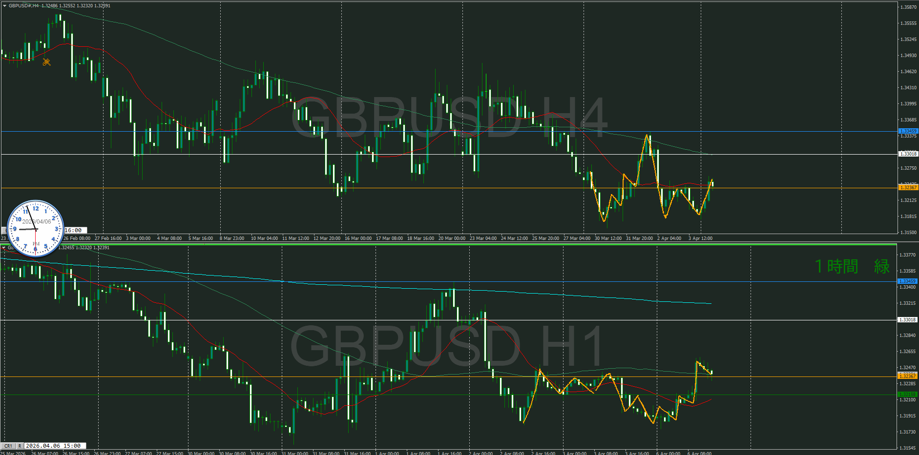 日足・4時間足が調整中で1時間が下を向いたけど、どうなるのか