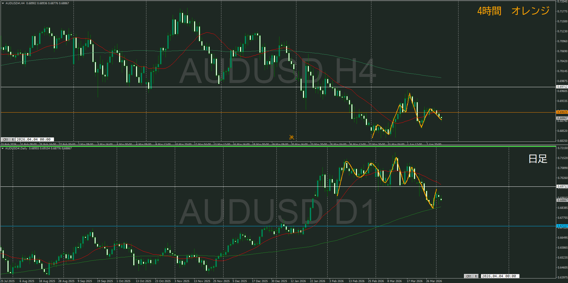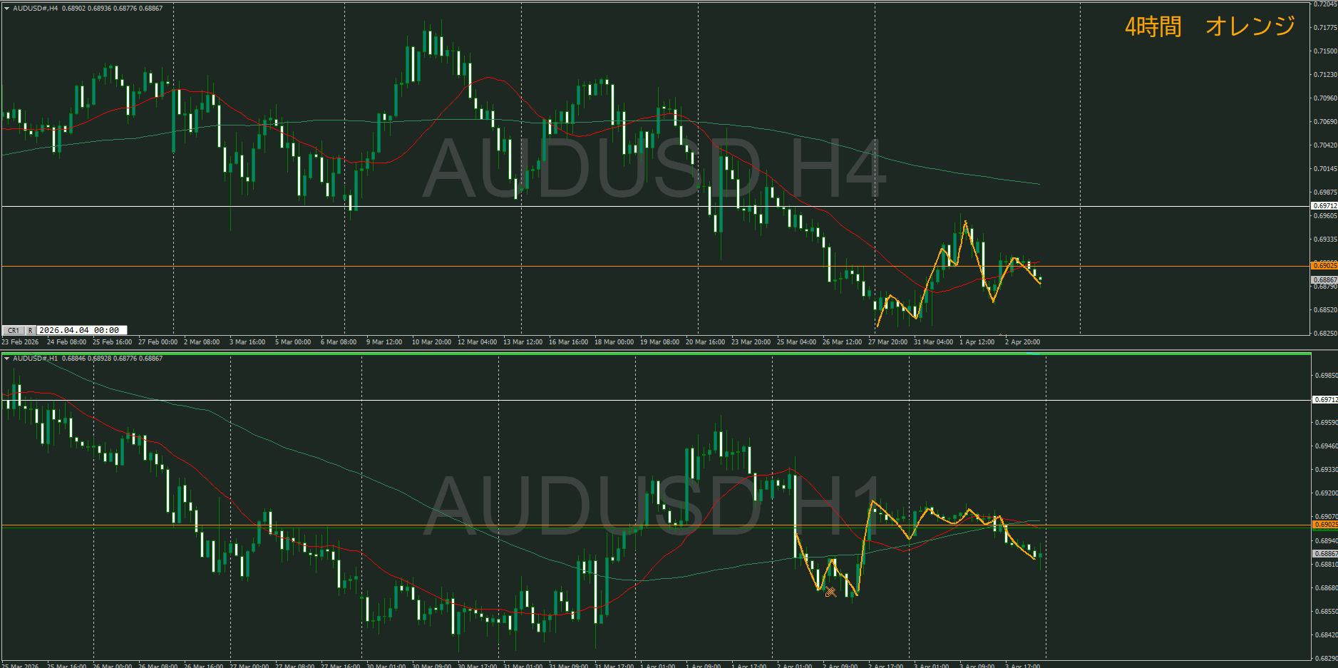 【4時間】方向下 戻り売りが入っているところ