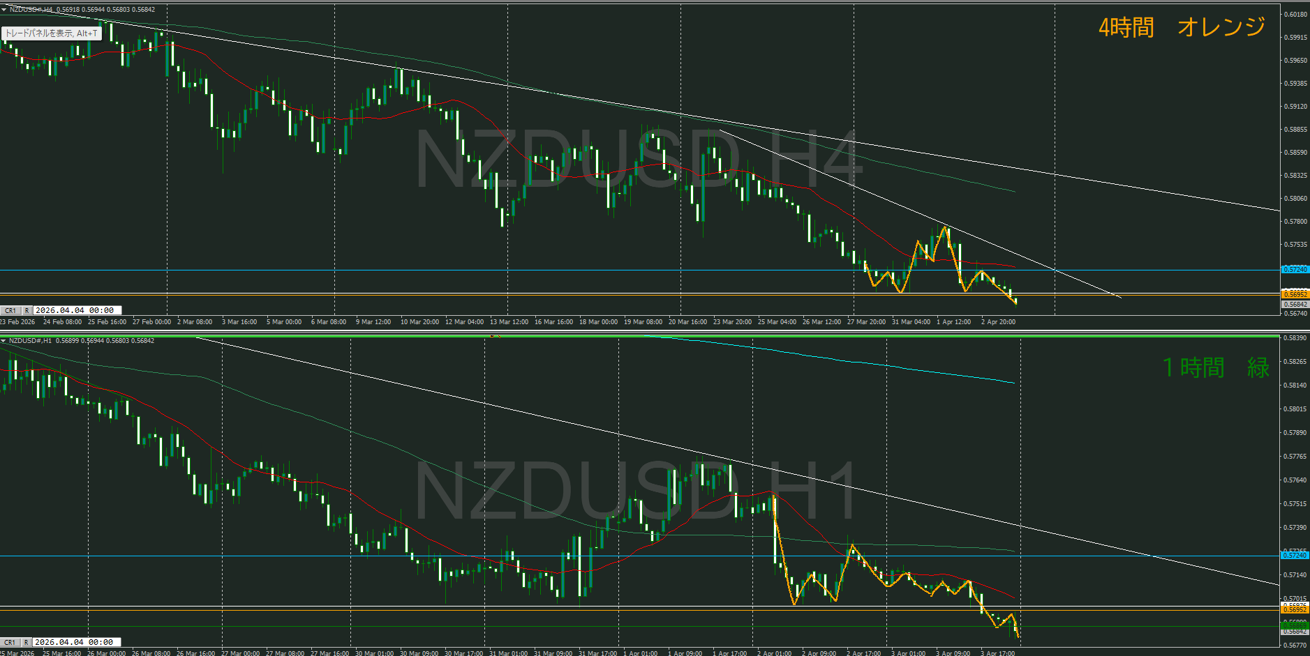 【4時間】方向下 下落トレンドが継続して下落の波の途中