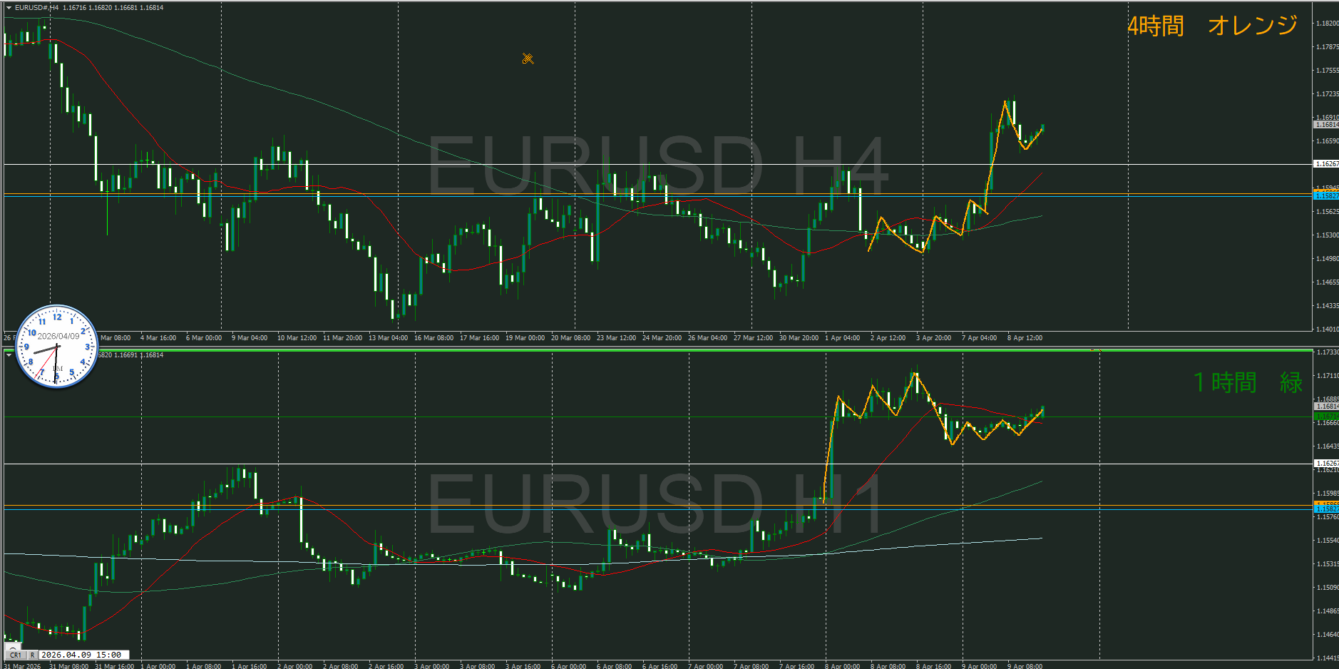 【1時間】方向上 トレンド転換シグナルが出て上昇の波の途中