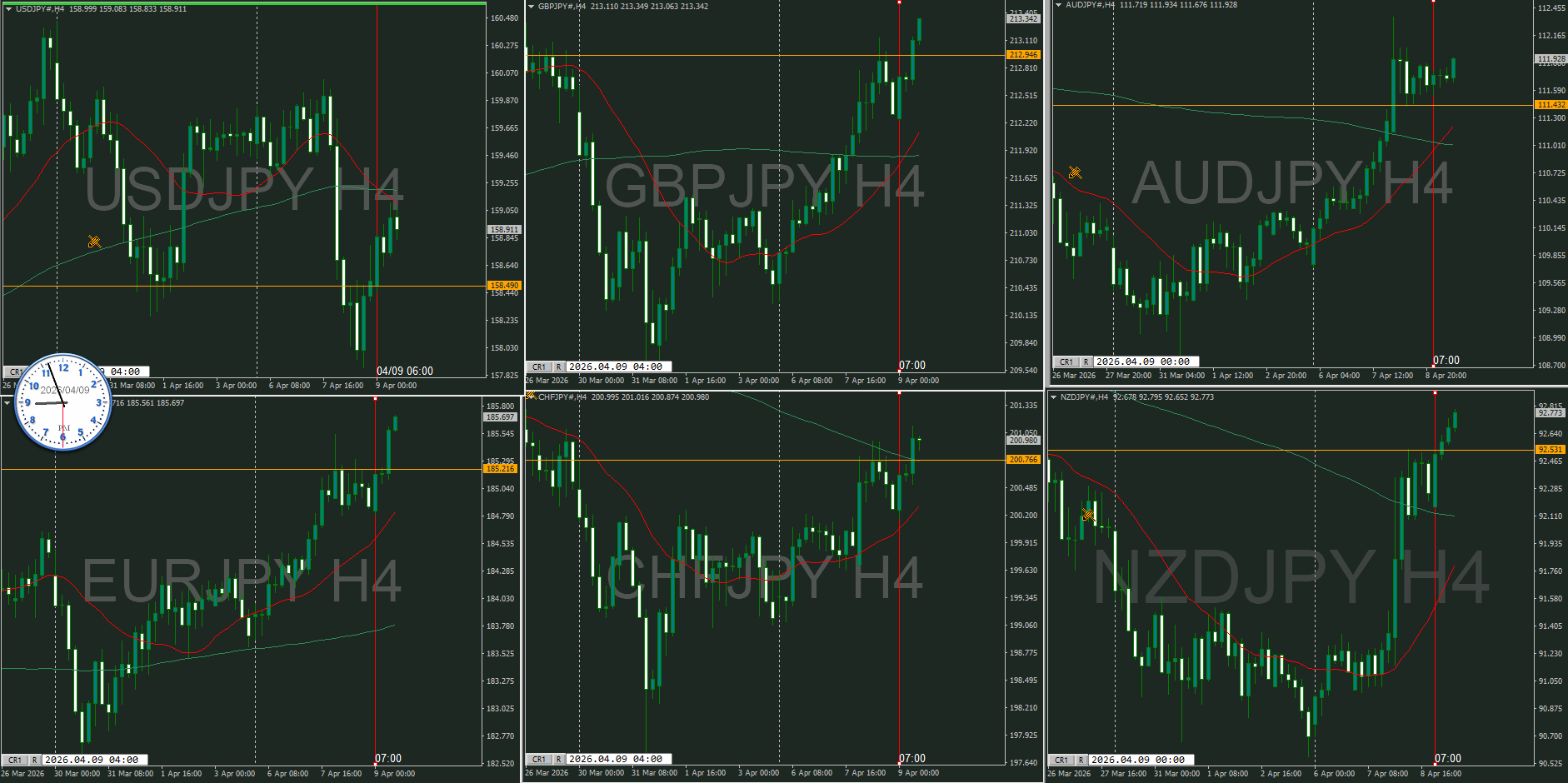 直近の4時間足ではドル円だけが陰線を付けているのでドル売りなんだと思う