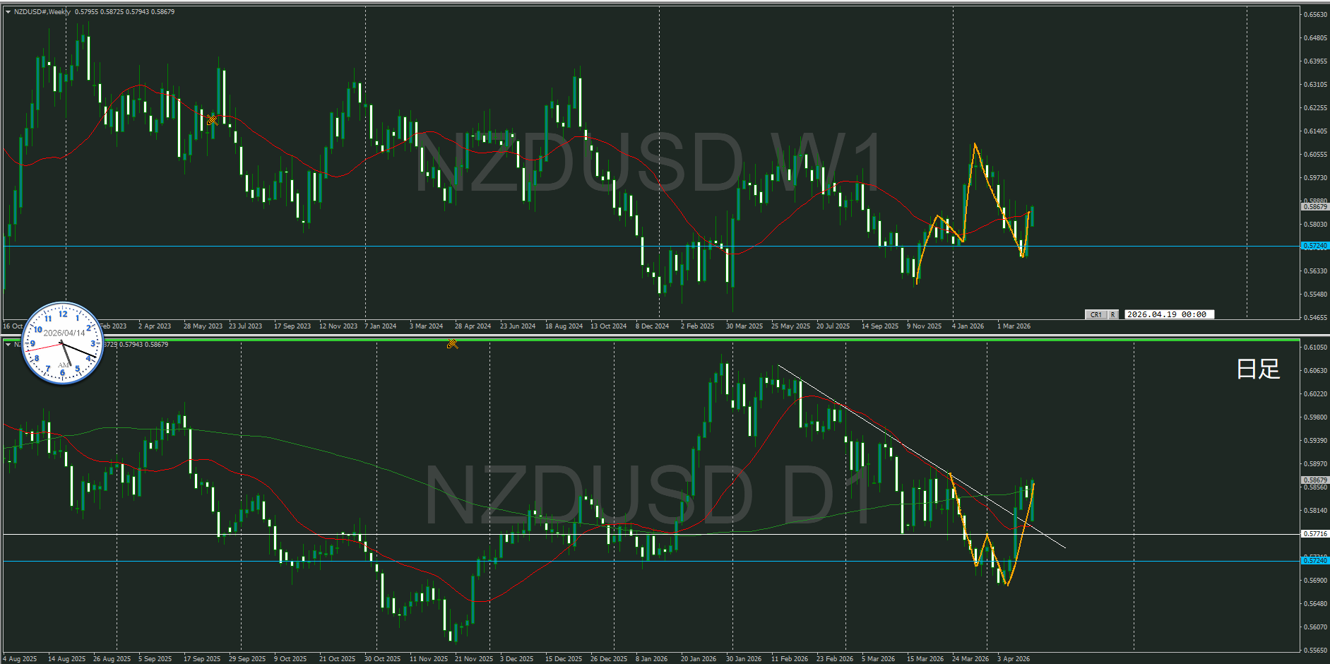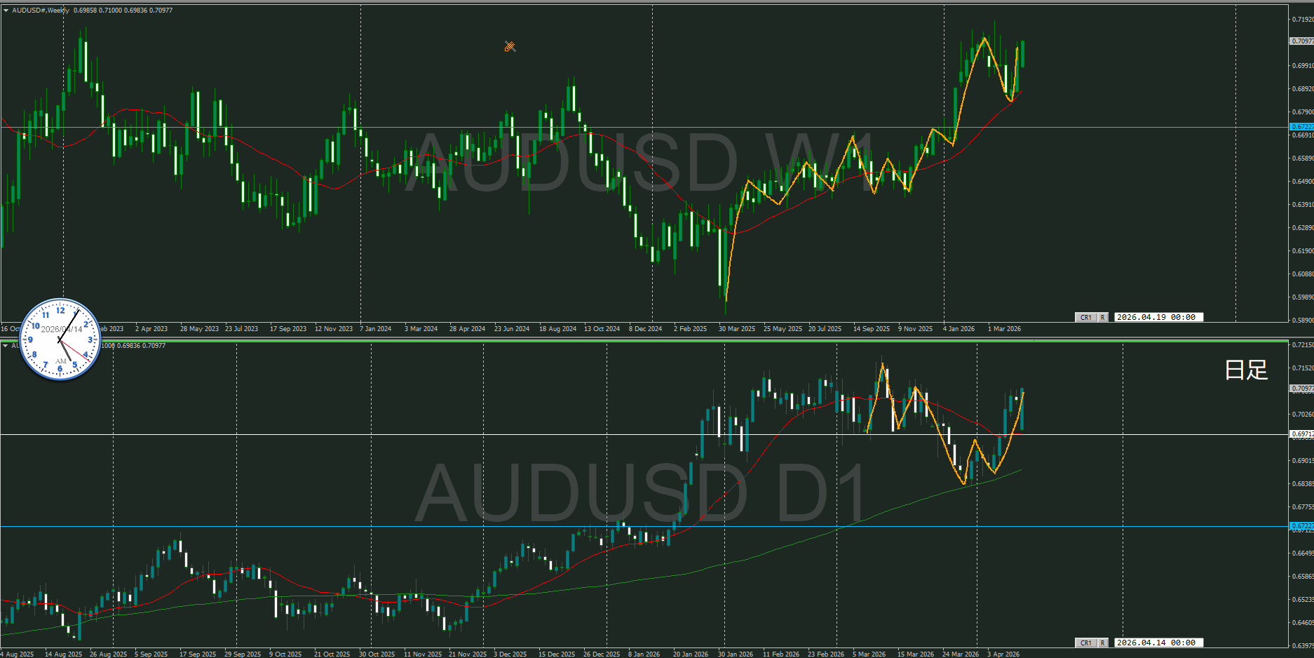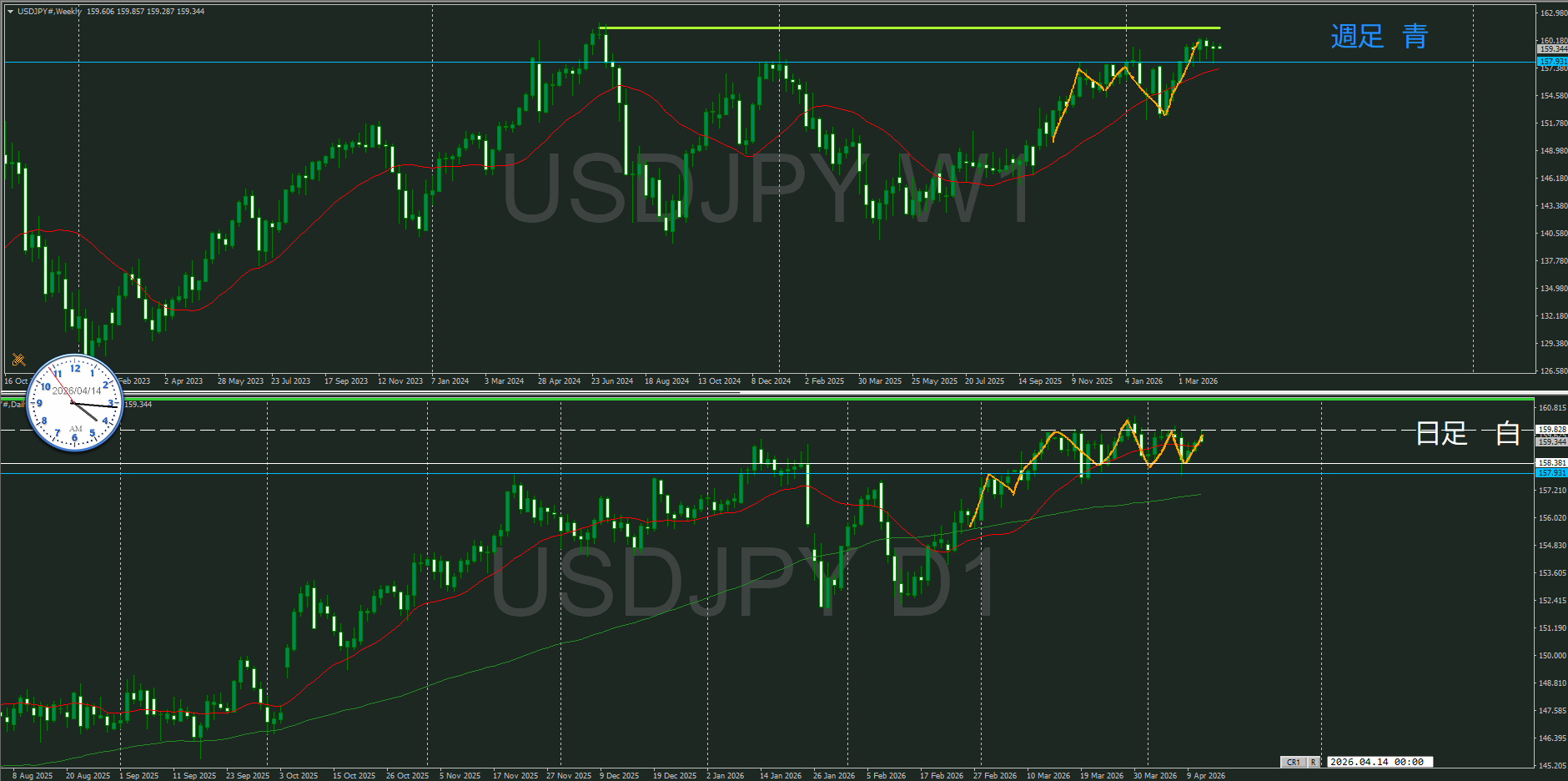 週合足、日足共に方向上
