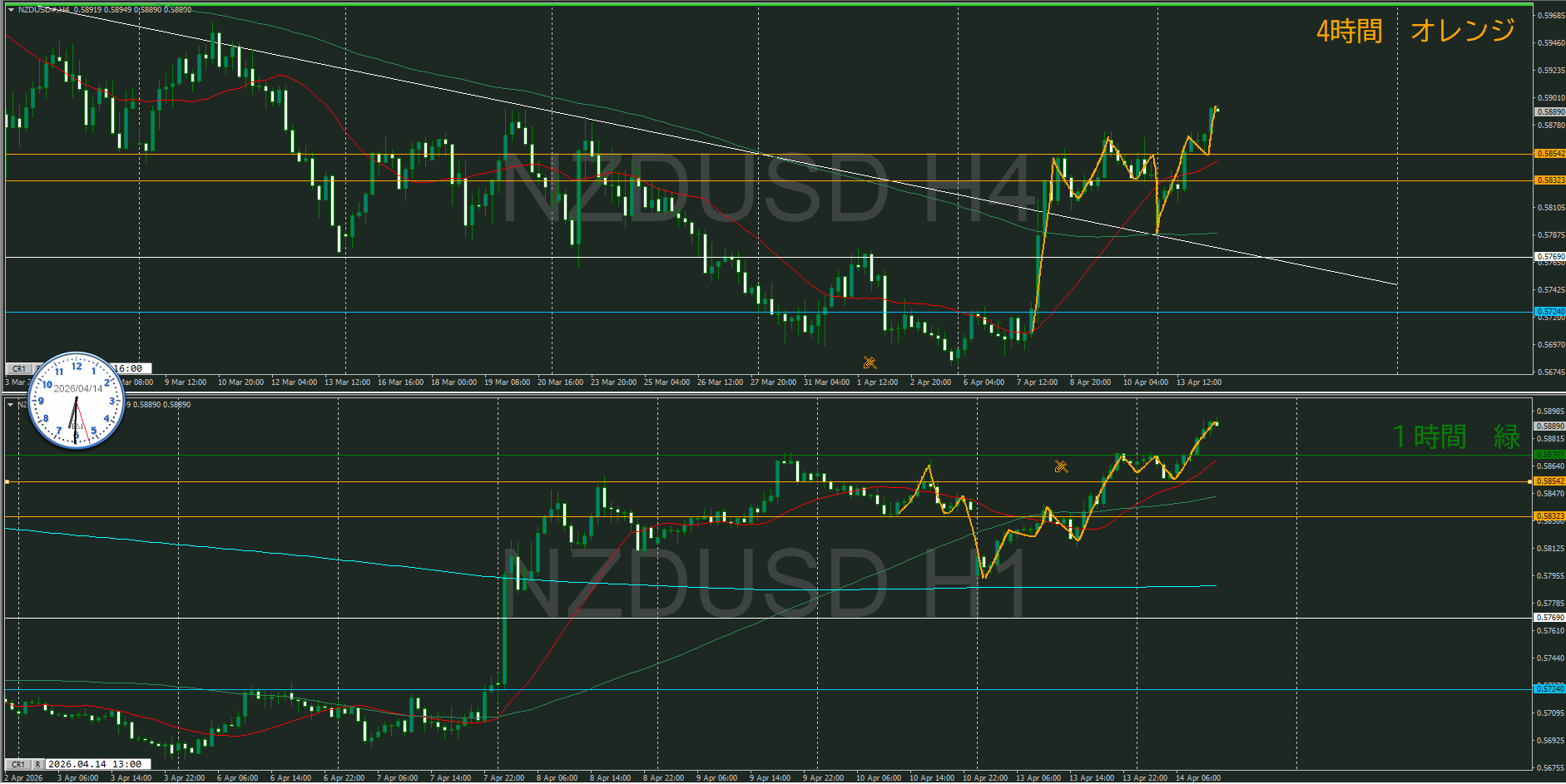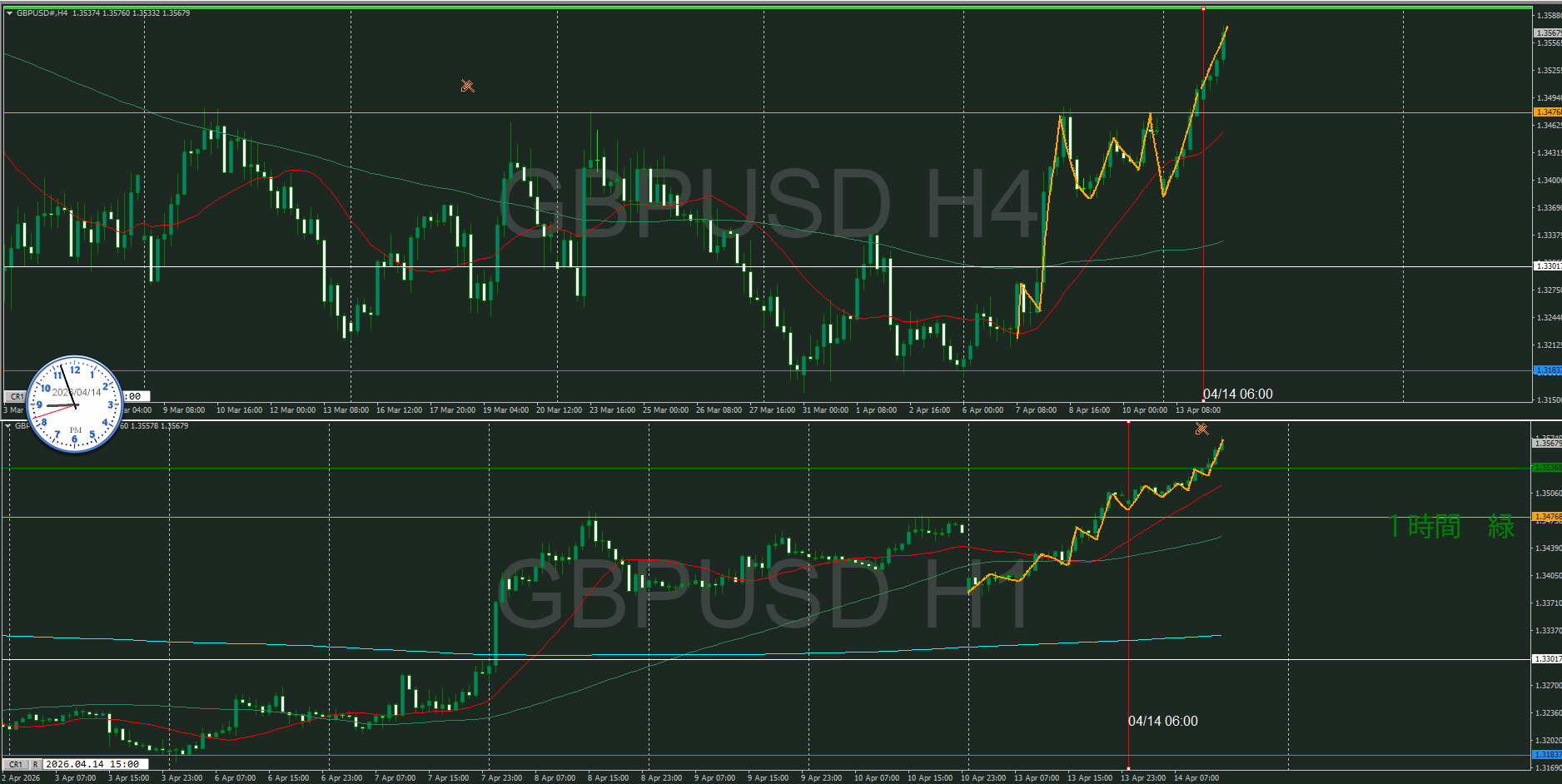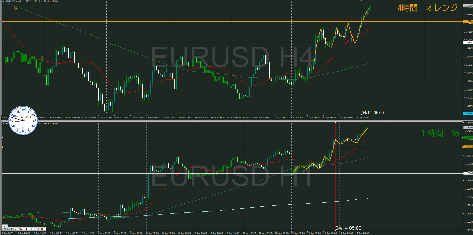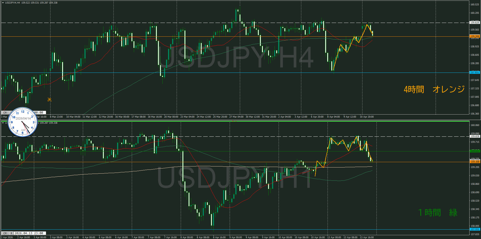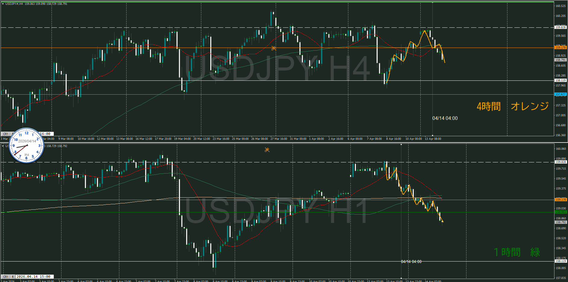 4時間がそうなるのか、買い目線で待機
