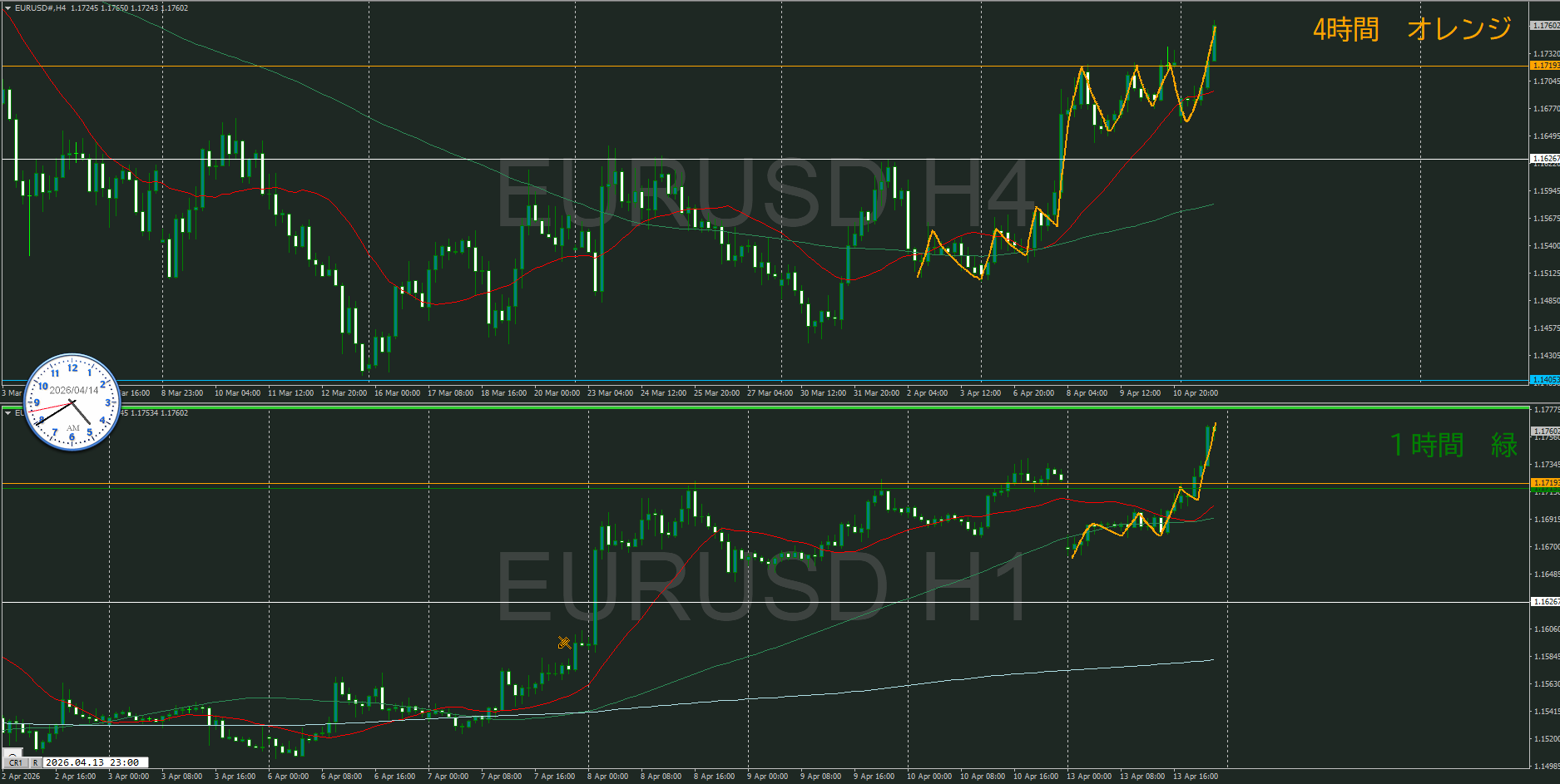 1時間で視ると、無理やり感があるけど上昇トレンド発生と視るか