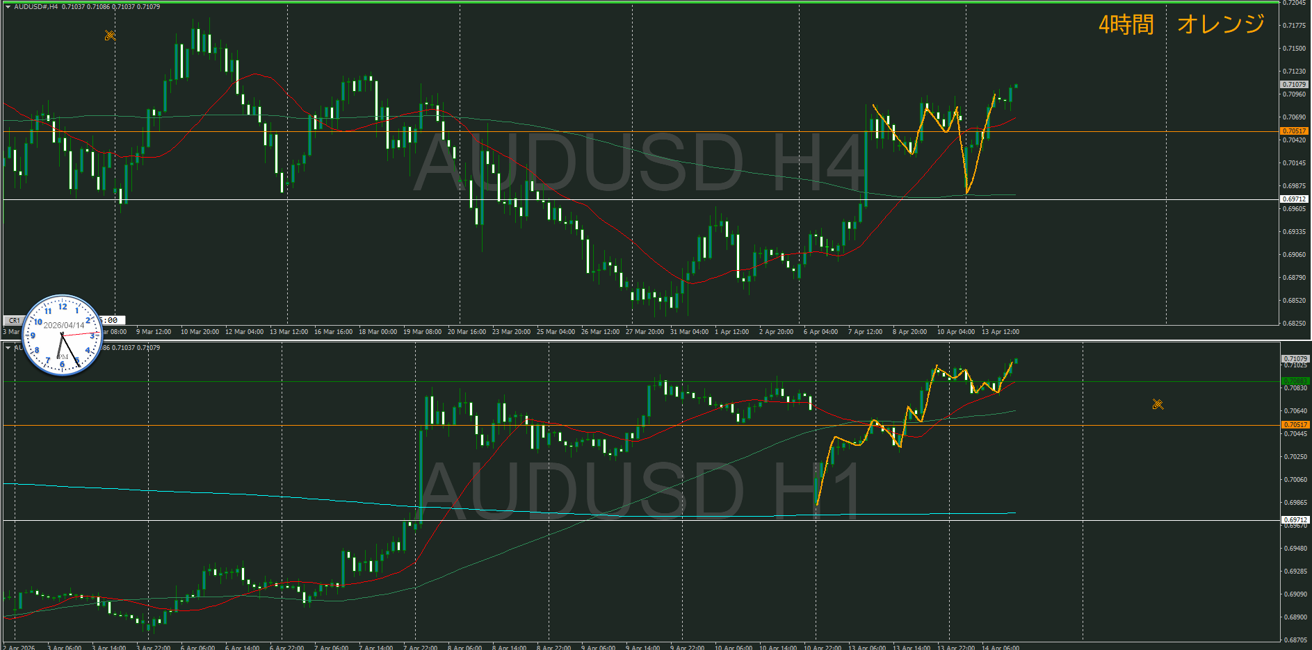 【4時間】方向上 トレンド転換シグナルが出て上昇の波の途中