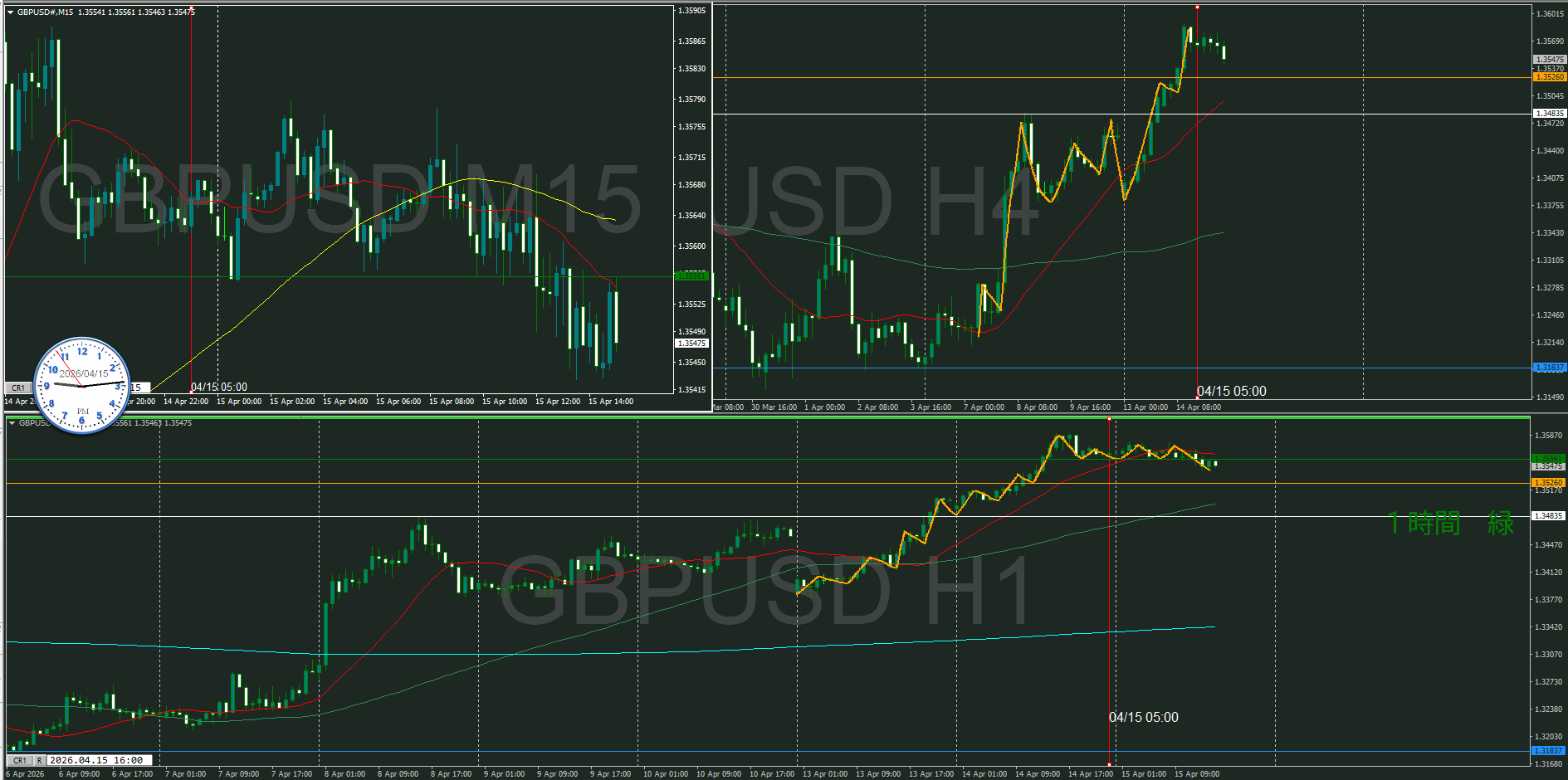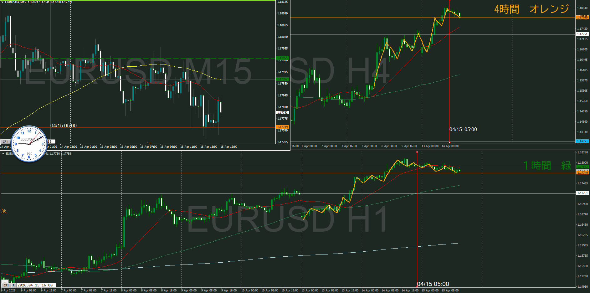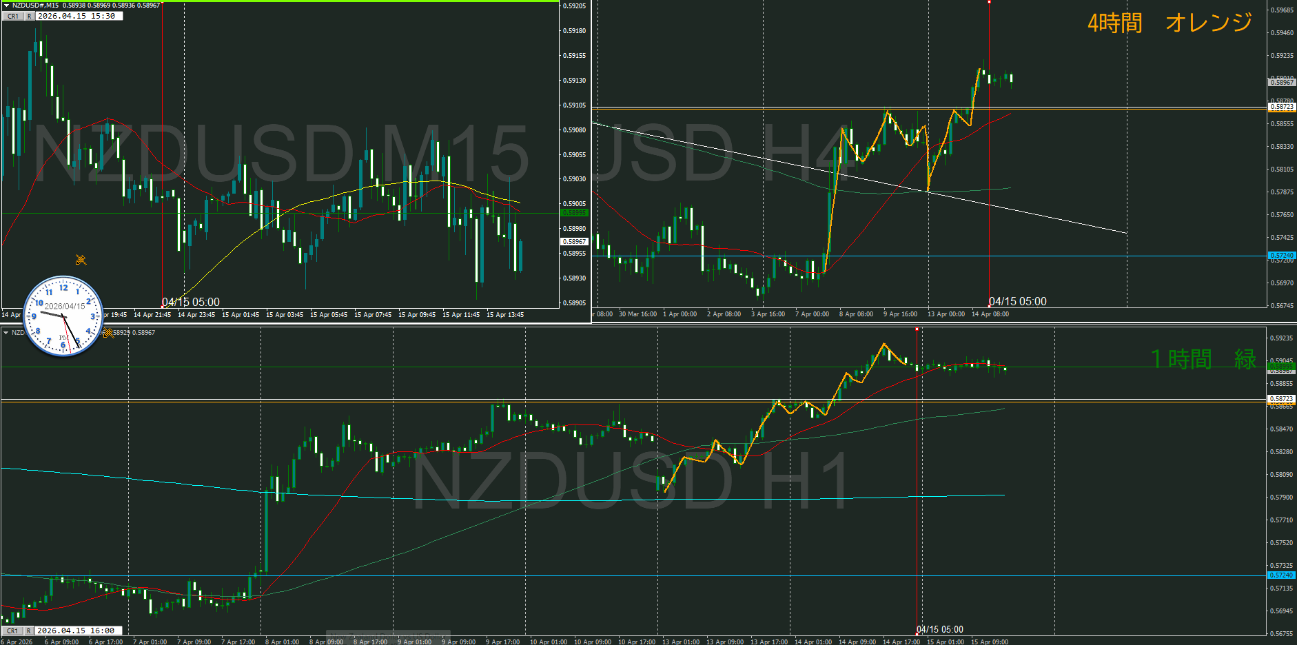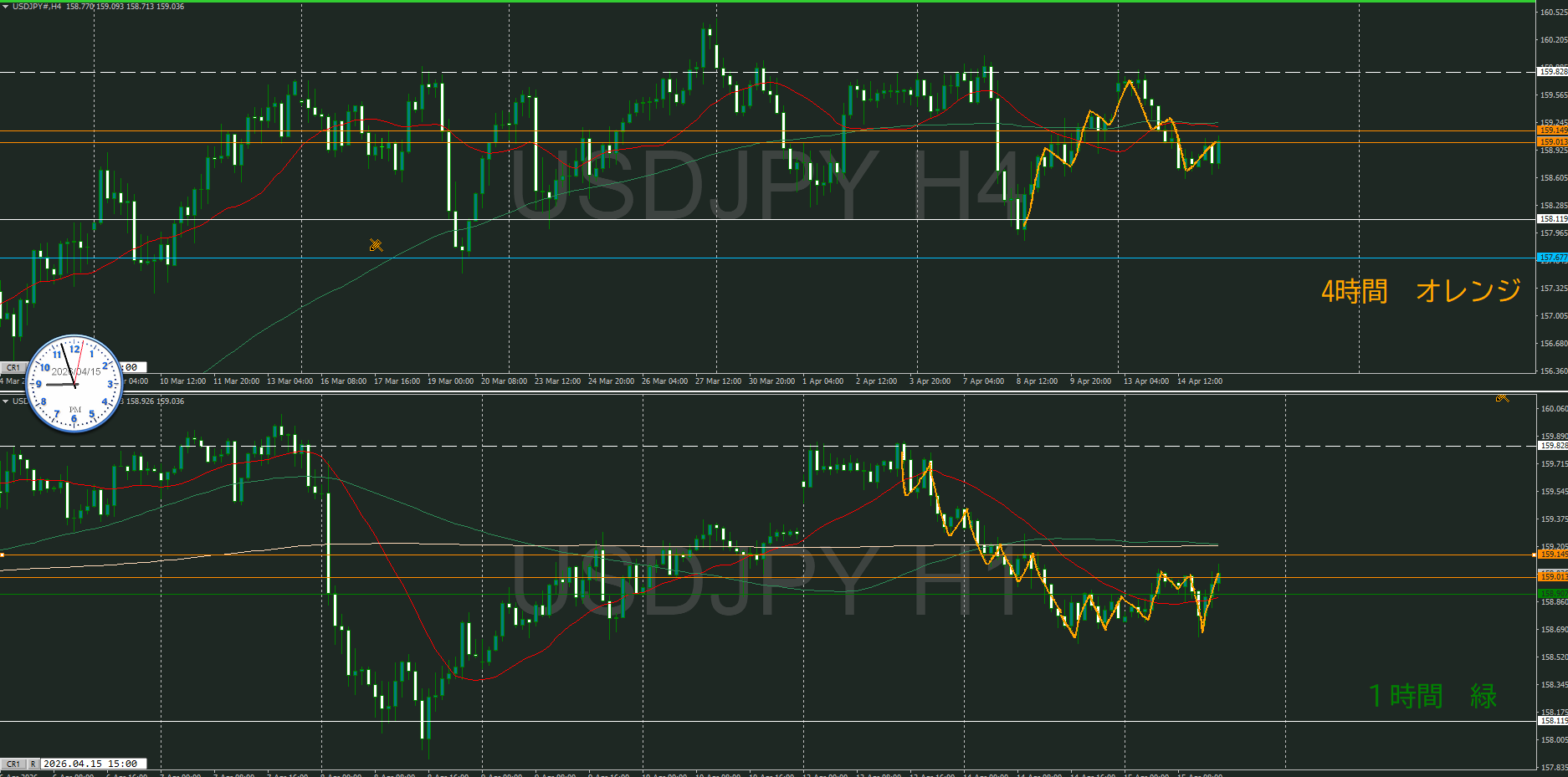 4時間で押してくるのか、1時間で上昇してしまうのか