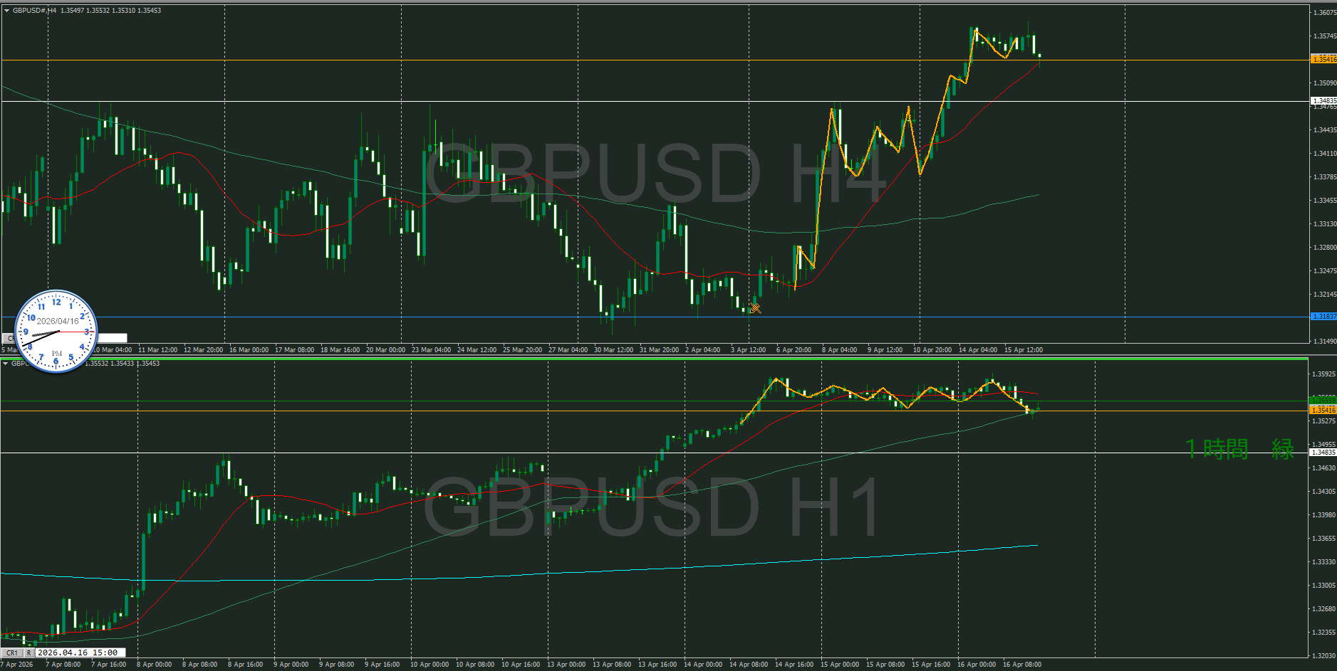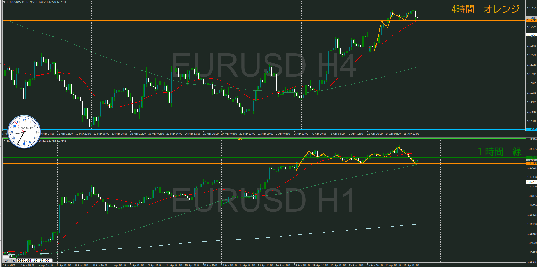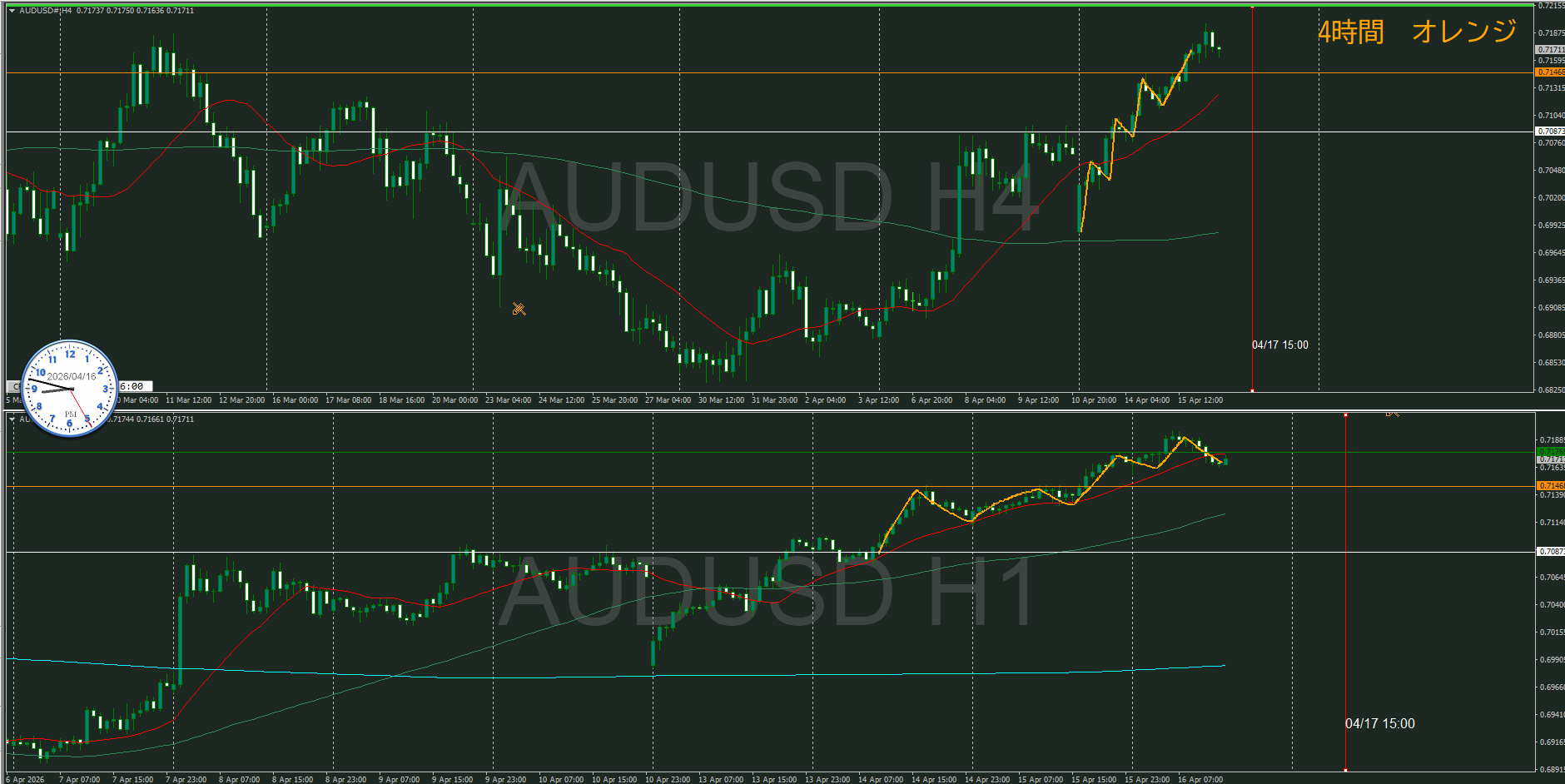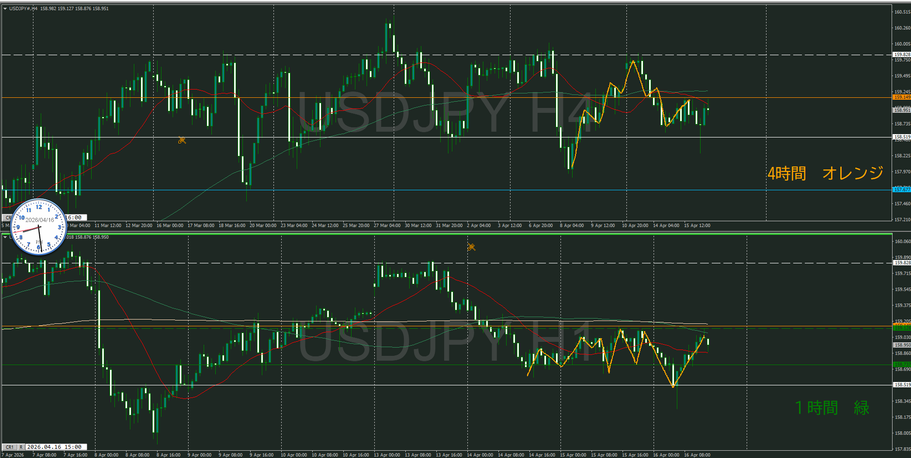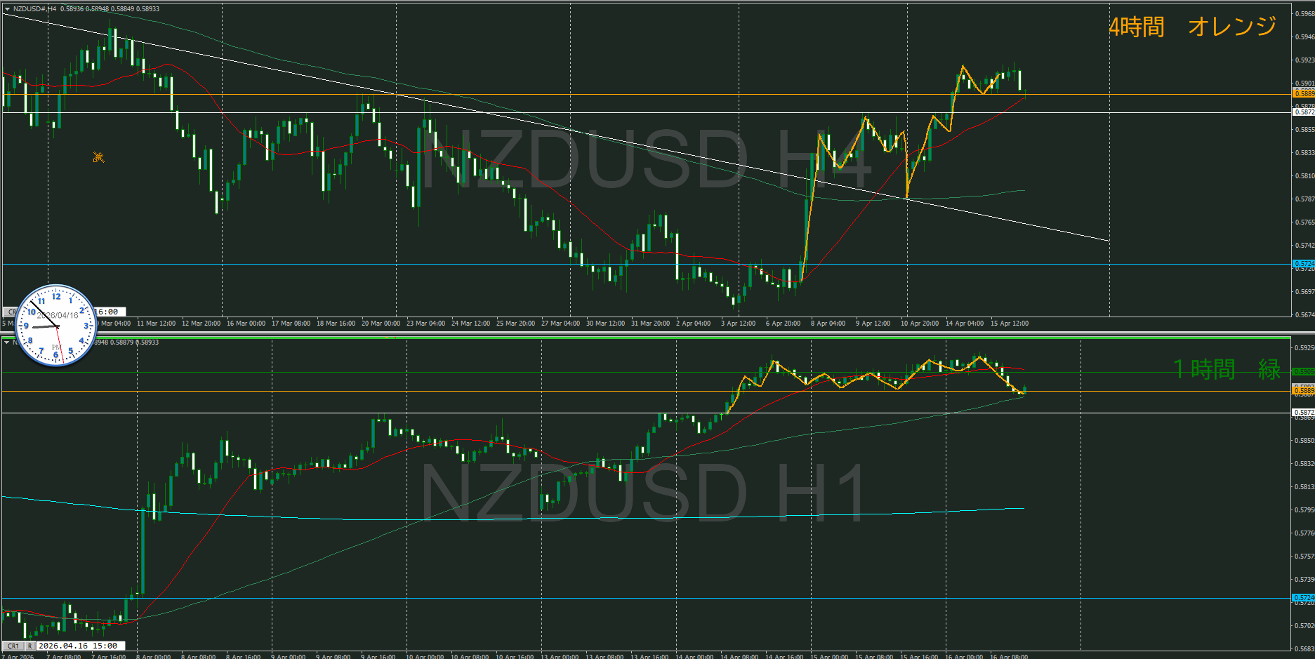 4・1時間同時高値越えなので、1時間の調整から再度上昇を待つ