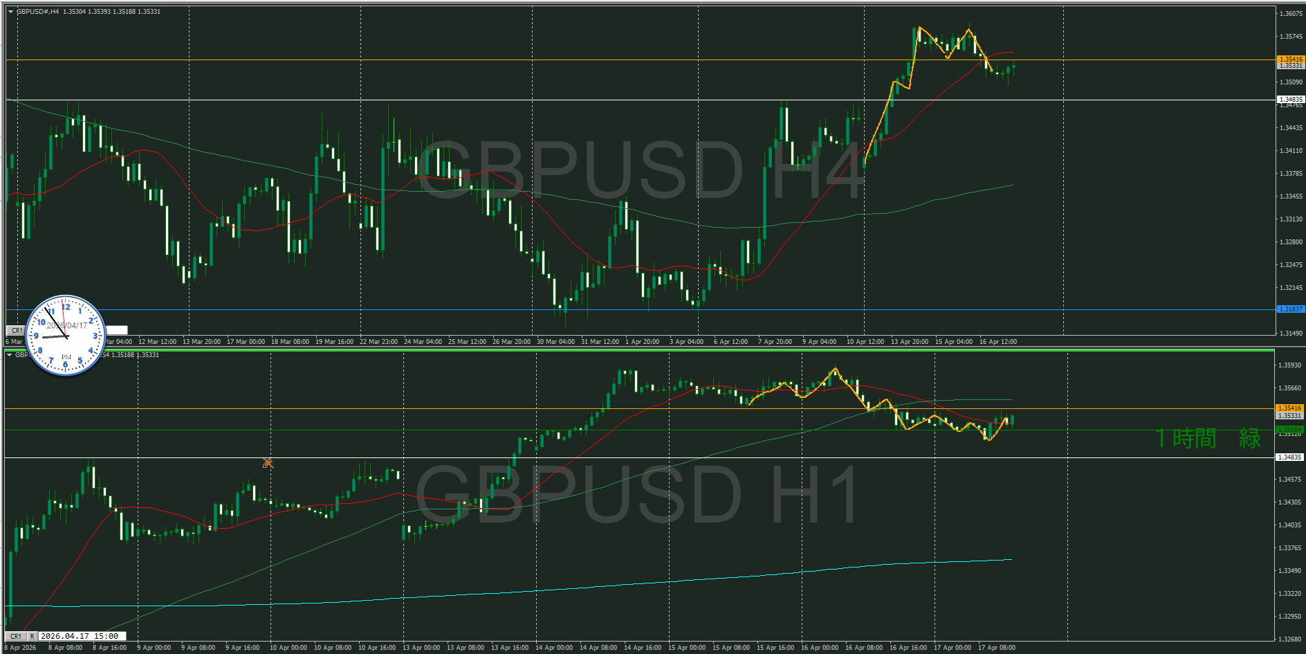 4時間の波が出る可能性はあるが、1時間で五波を日本時間では狙いたくない