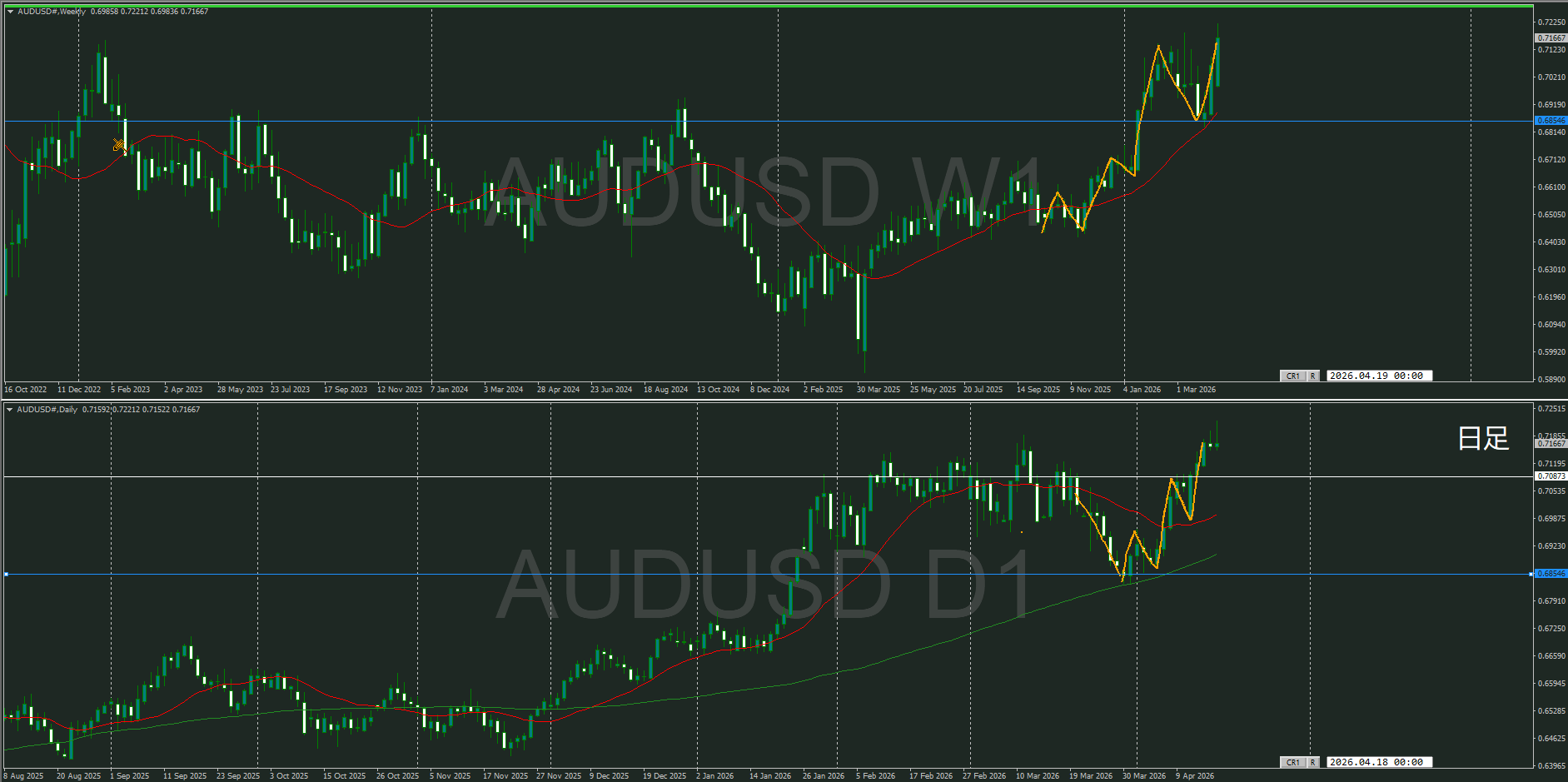 【日足】方向上 上昇トレンドが継続して上昇の波の途中