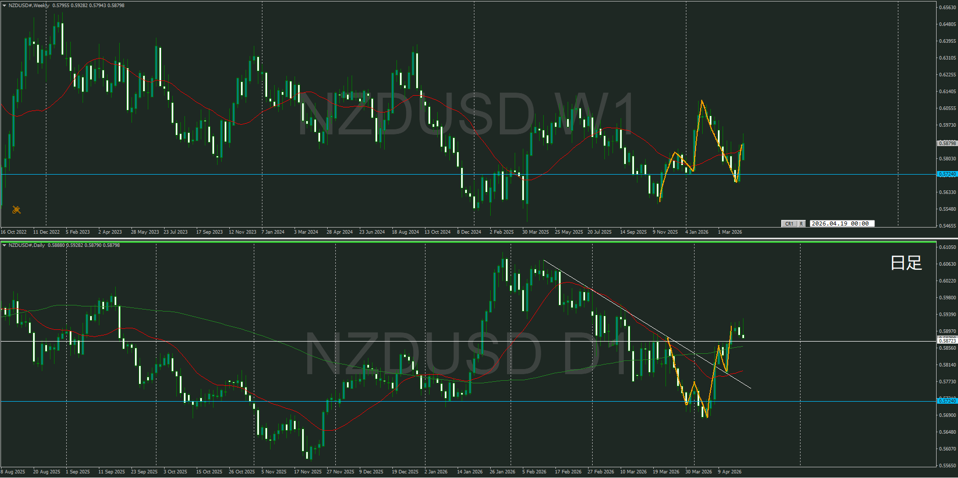 日足が押しているので、売りが優勢か