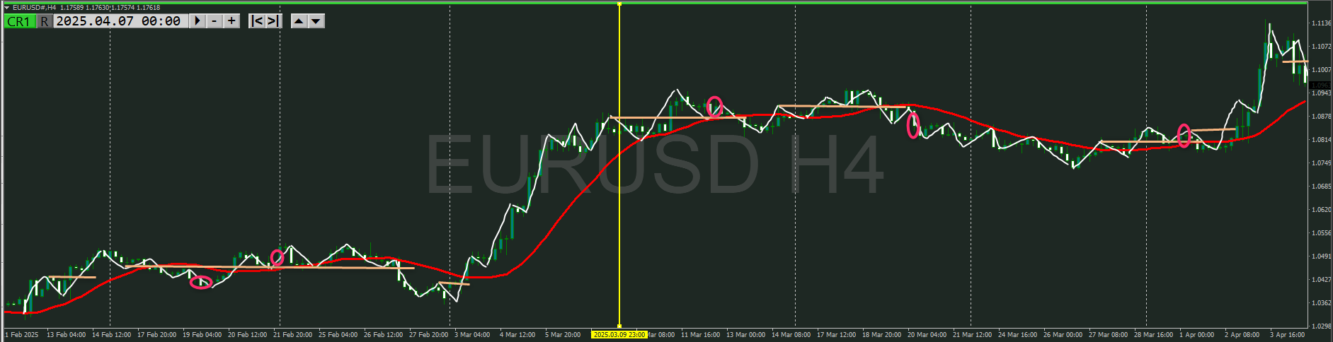 【4時間】方向上 トレンド転換シグナルが出て上昇の波の途中