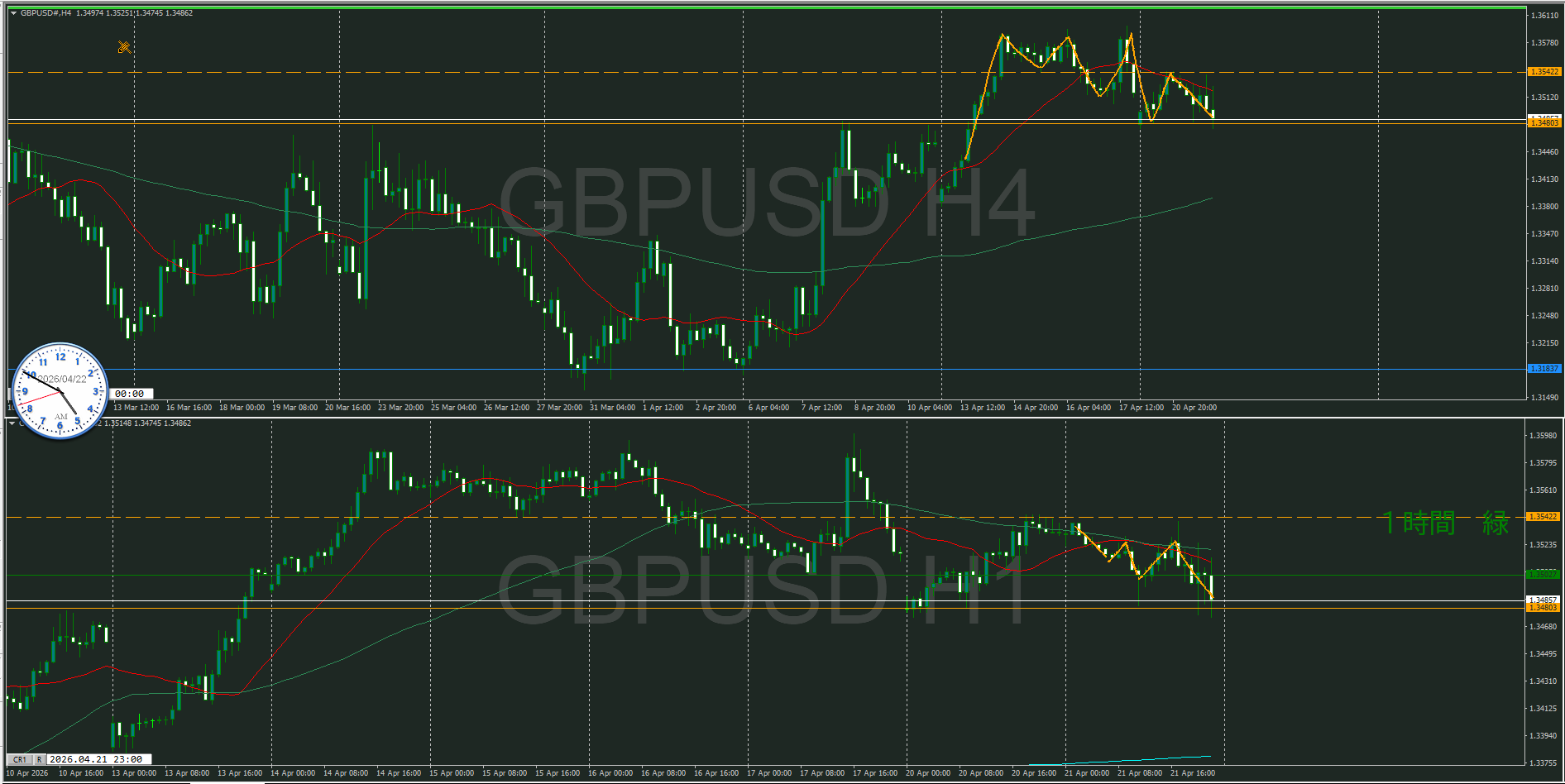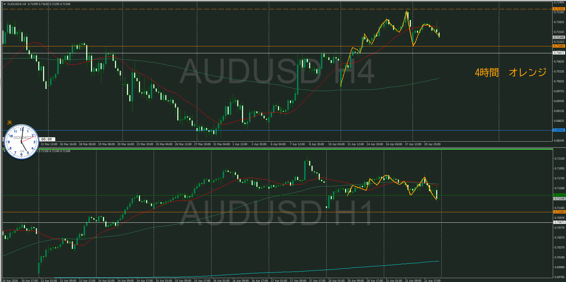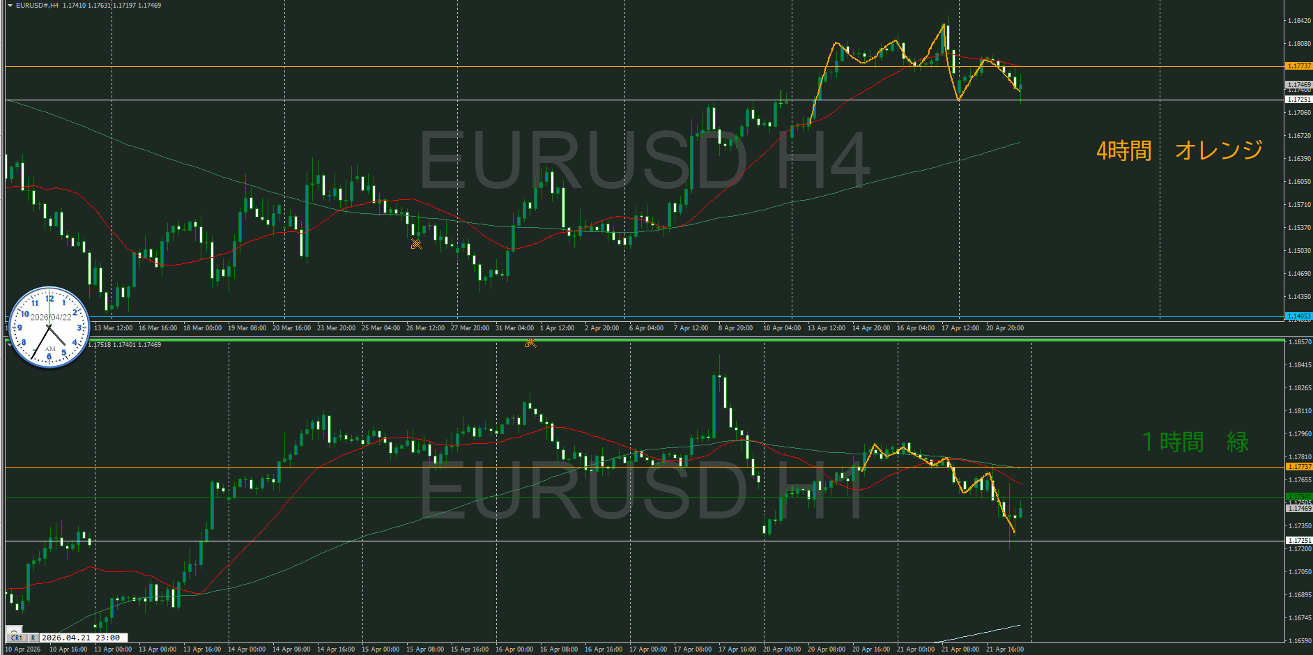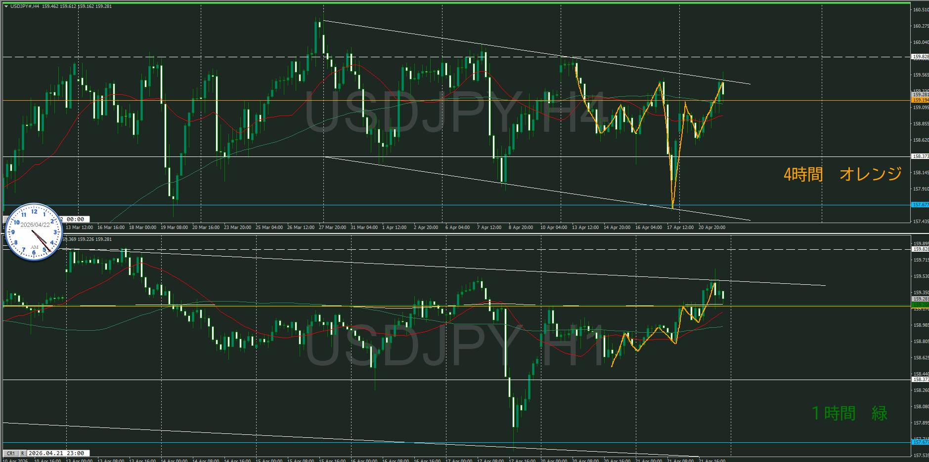 4・1時間同時抜けなのでセオリ的には1時間の調整から再度上昇を狙うところ