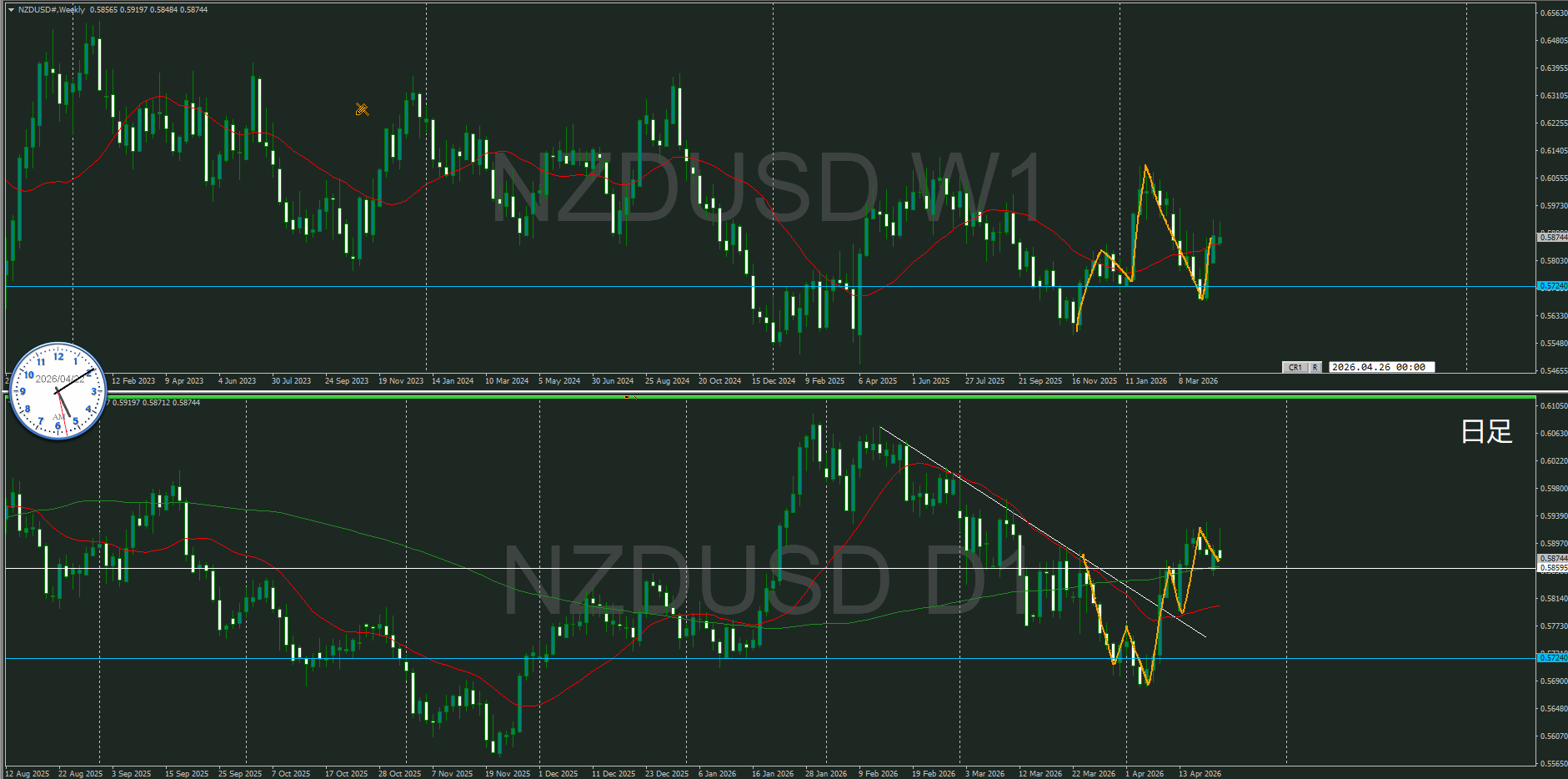 日足が下降フラッグなので、上に抜ける可能性ありだけど、あくまでも可能性であり確定ではない