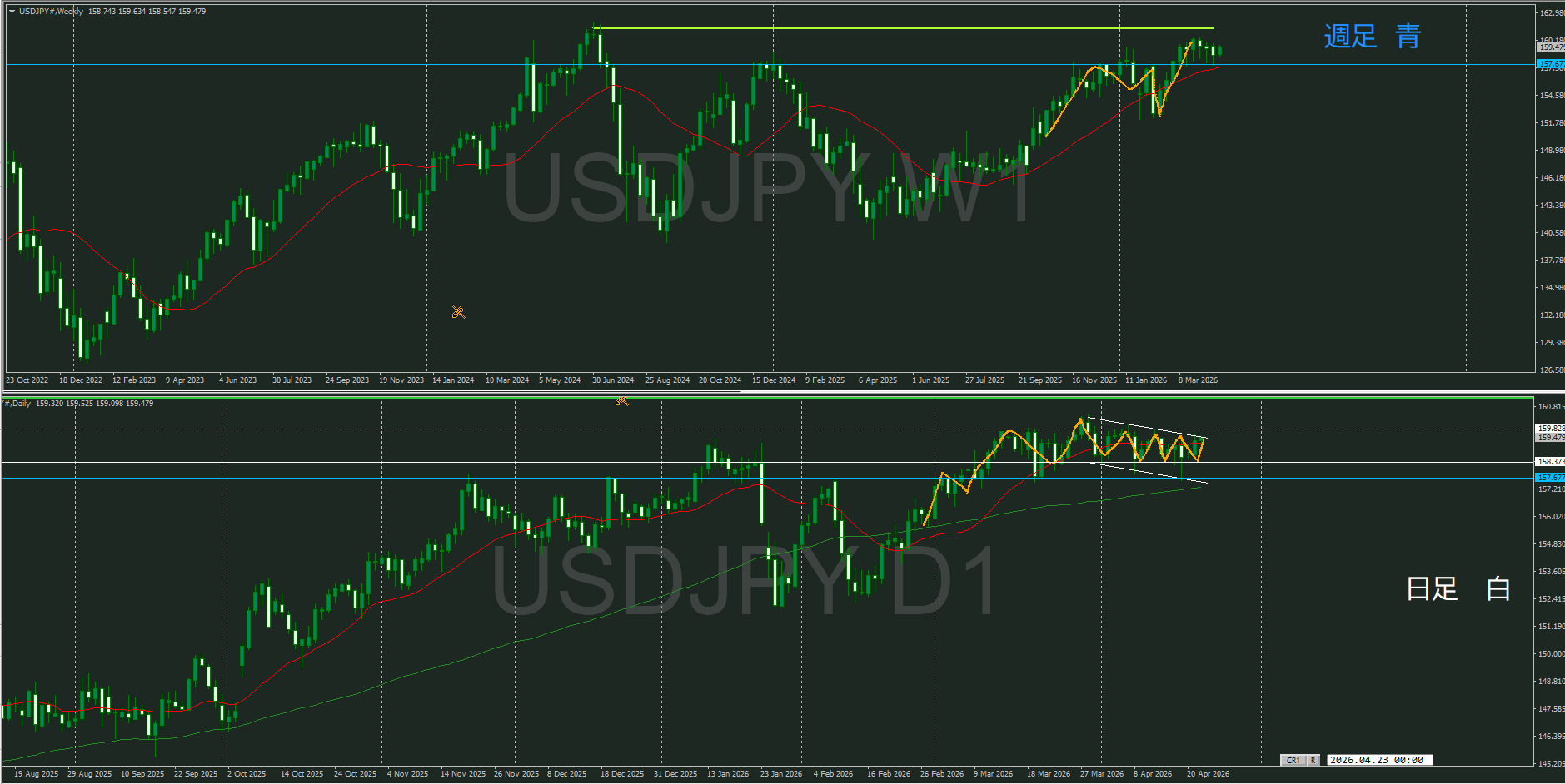 逆で、買いも怪しくなってきたが、週足MAで日足が支えられるのか