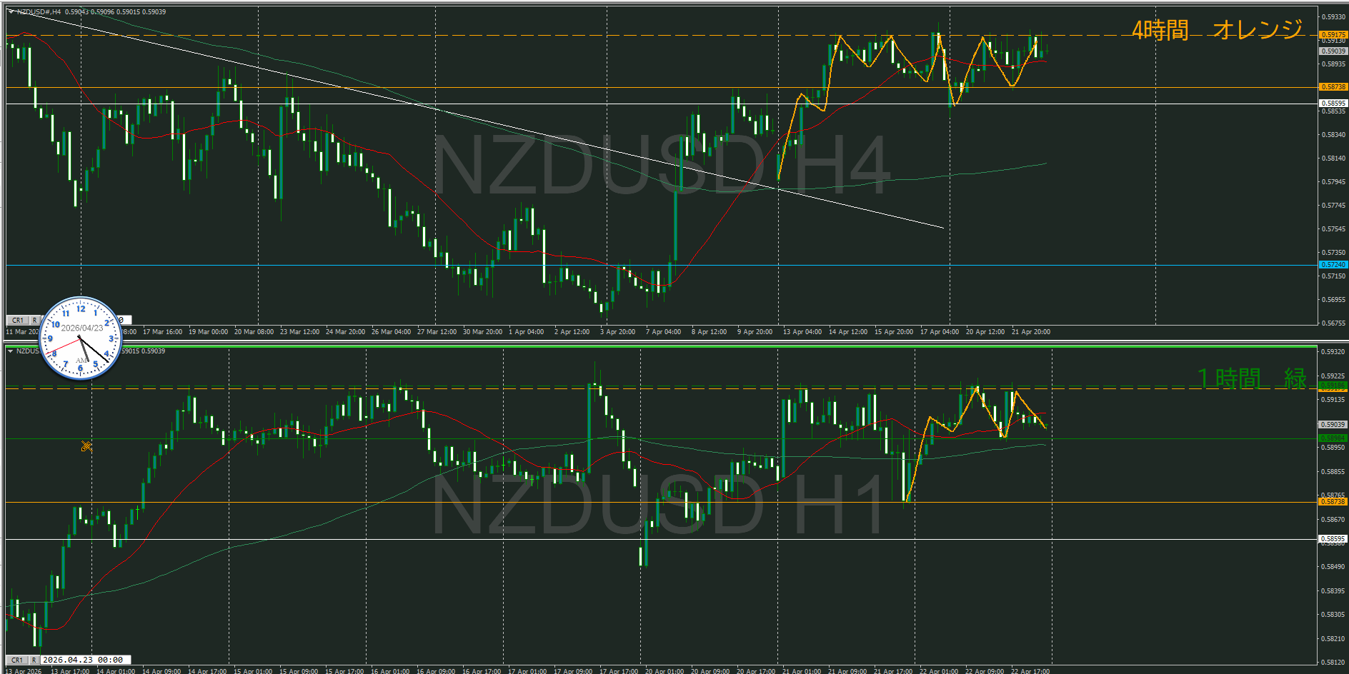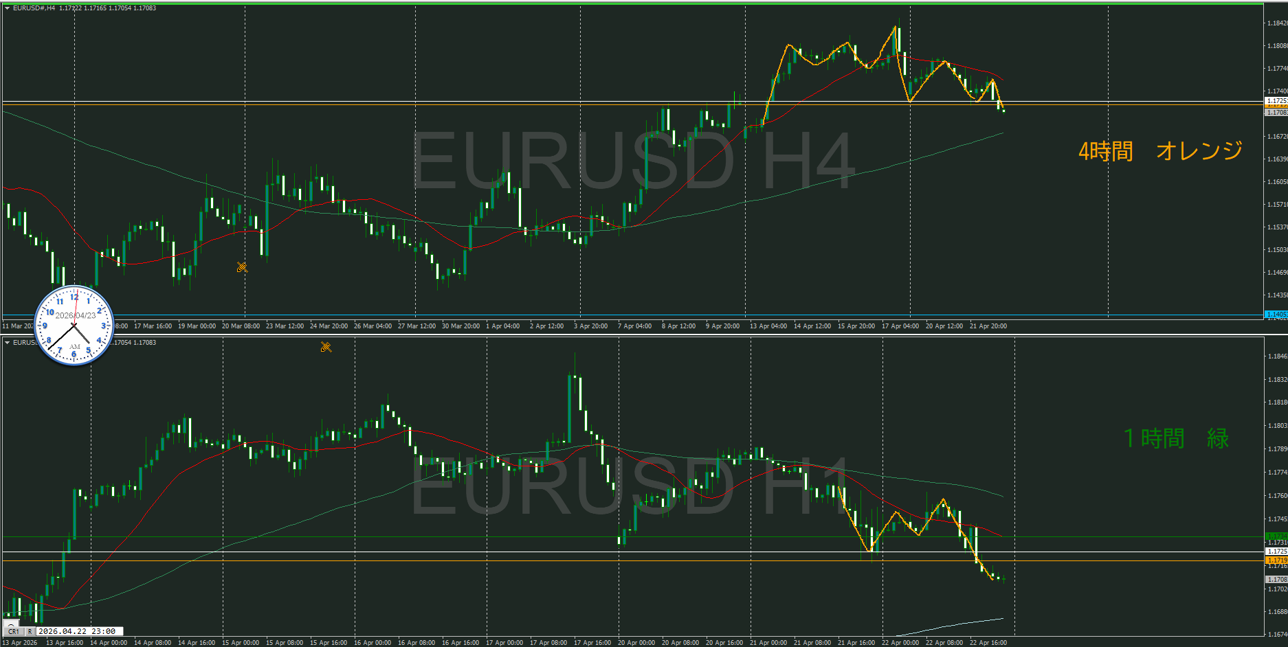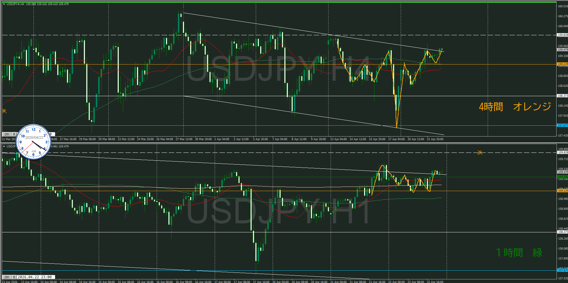 【4時間】方向下 調整に入ってきた