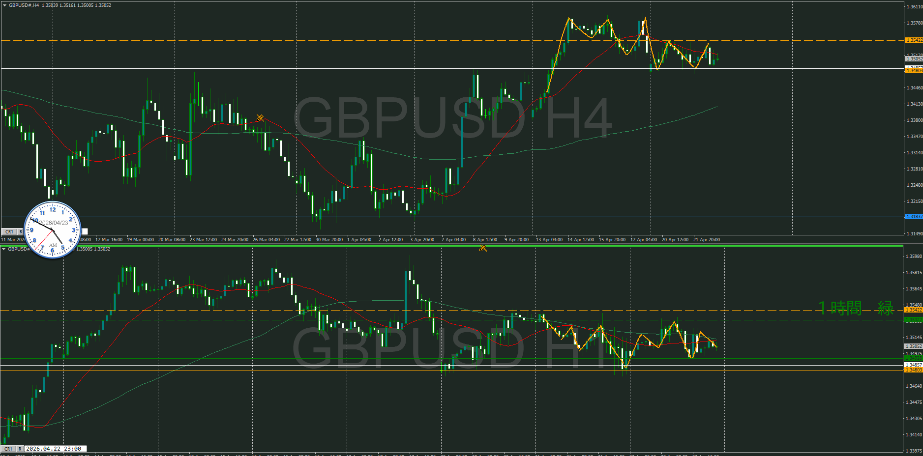 【1時間】方向上 トレンド転換シグナルが出て上昇の波の途中