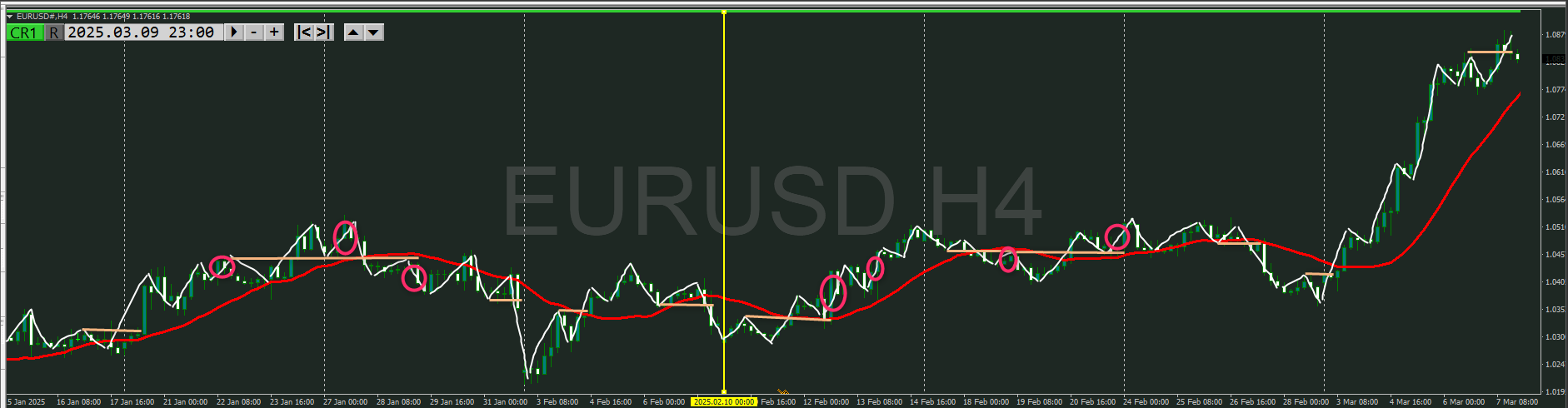1時間で4時間MAを超えてきて、上昇トレンドが発生しても4時間のMAは下向き